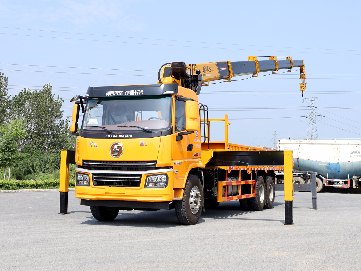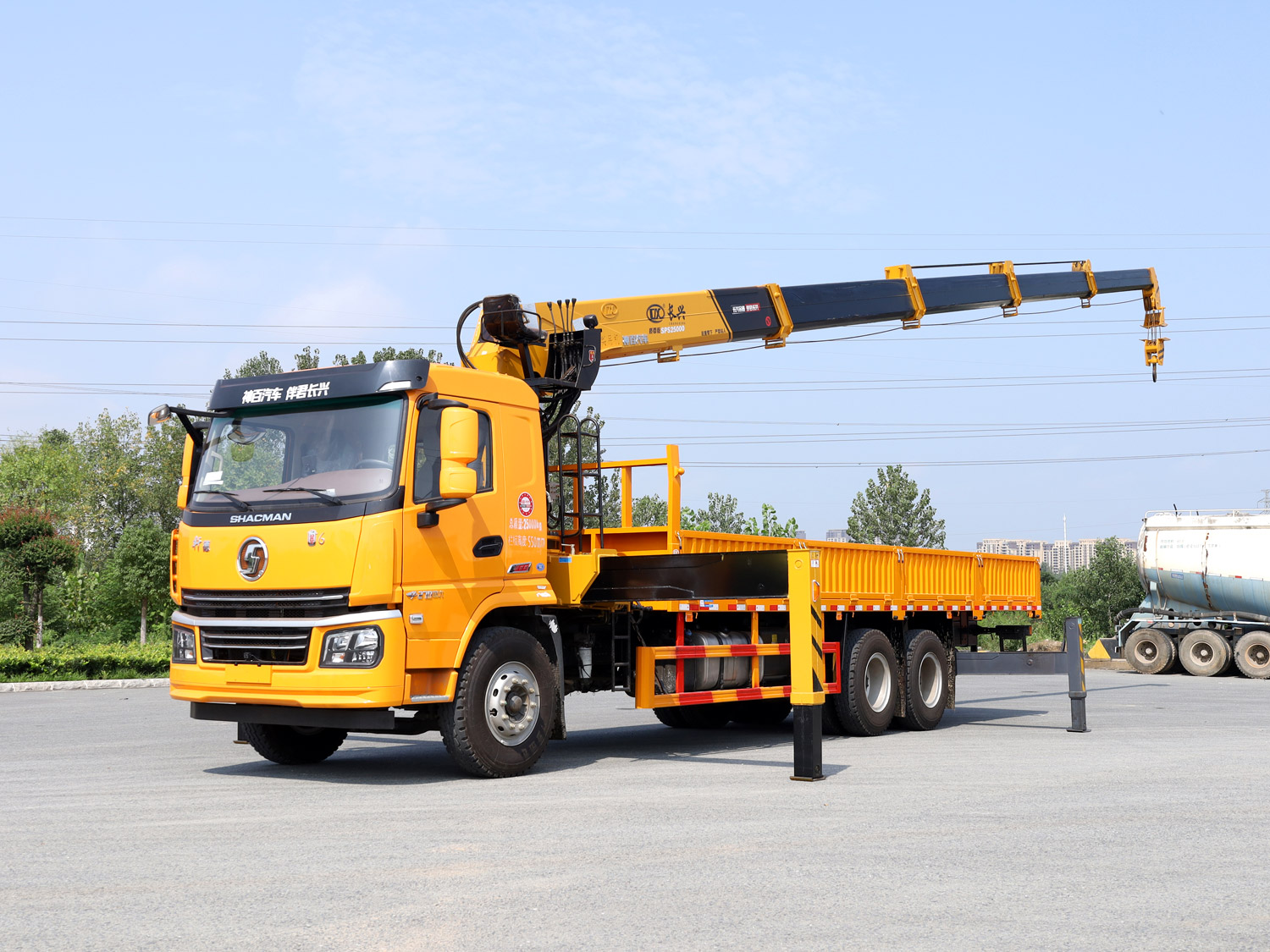 陜汽軒德翼6后雙橋上裝長(zhǎng)興10噸直臂式吊機(jī)