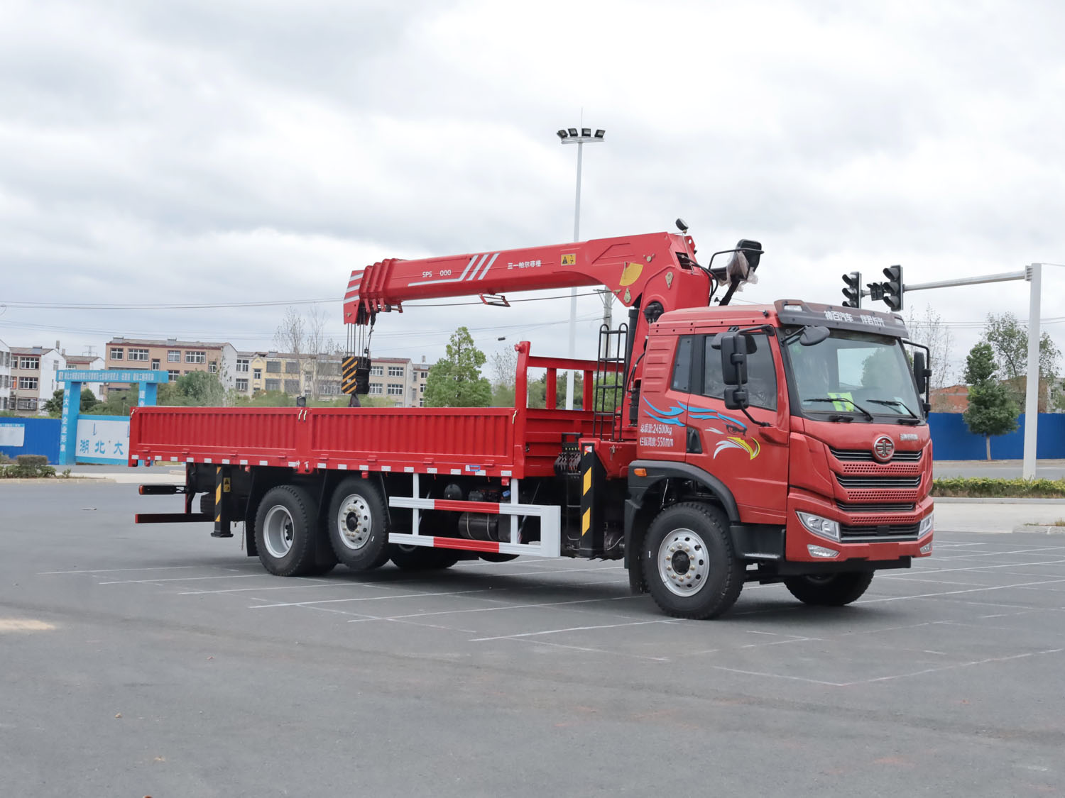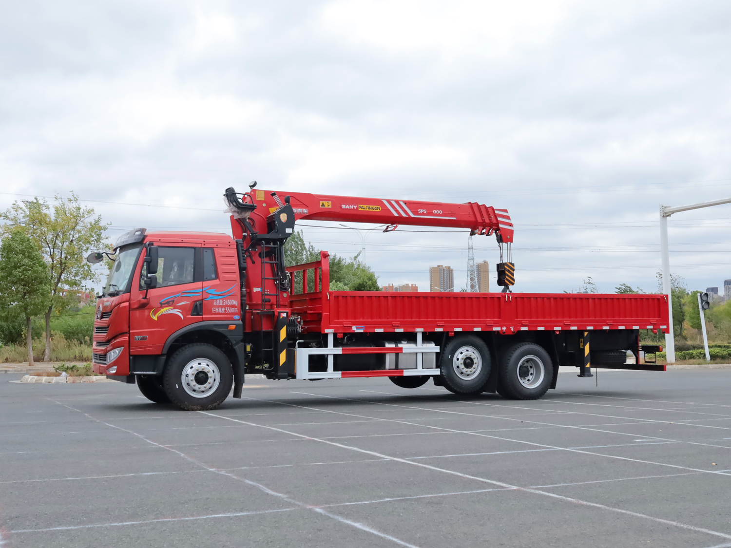 陜汽德龍F(tuán)3000上裝三一10噸直臂式吊機(jī)(帶高空作業(yè)護(hù)欄)