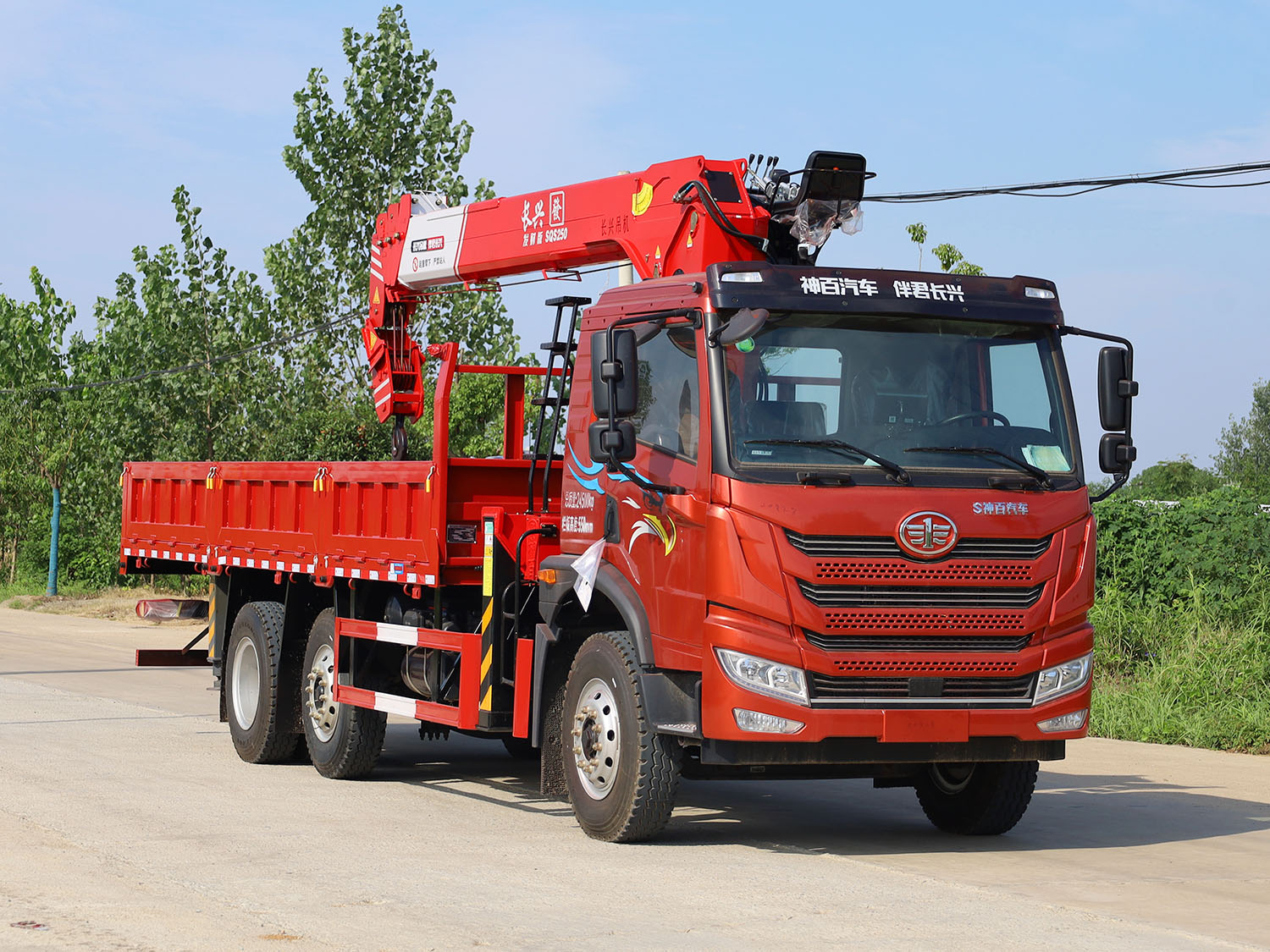陜汽德龍F3000上裝三一10噸直臂式吊機(帶高空作業(yè)護欄)