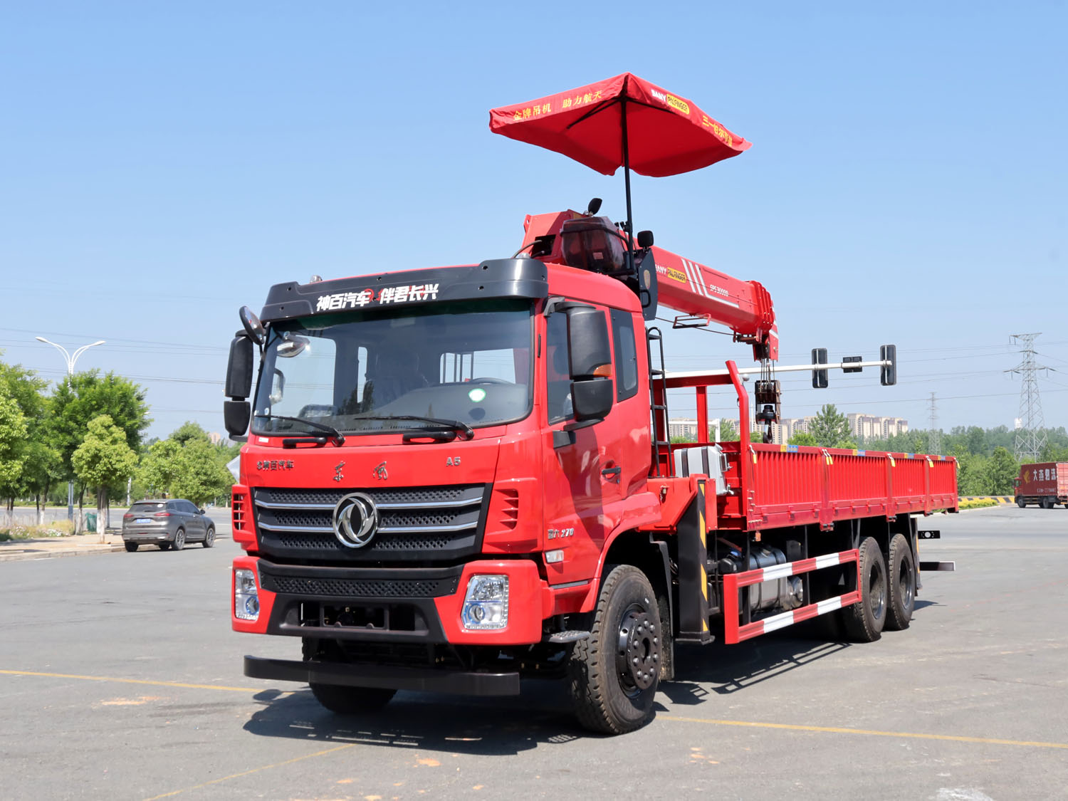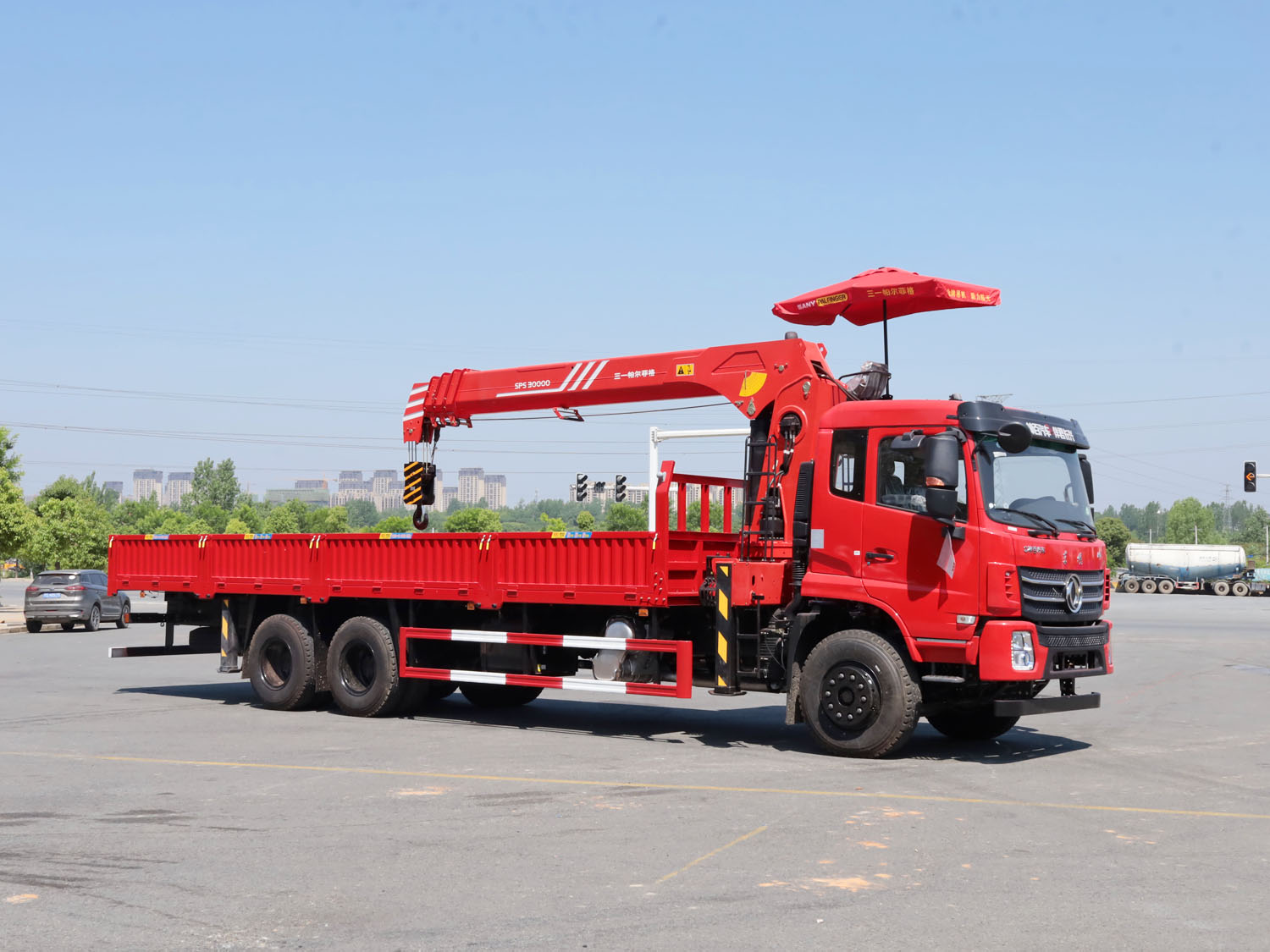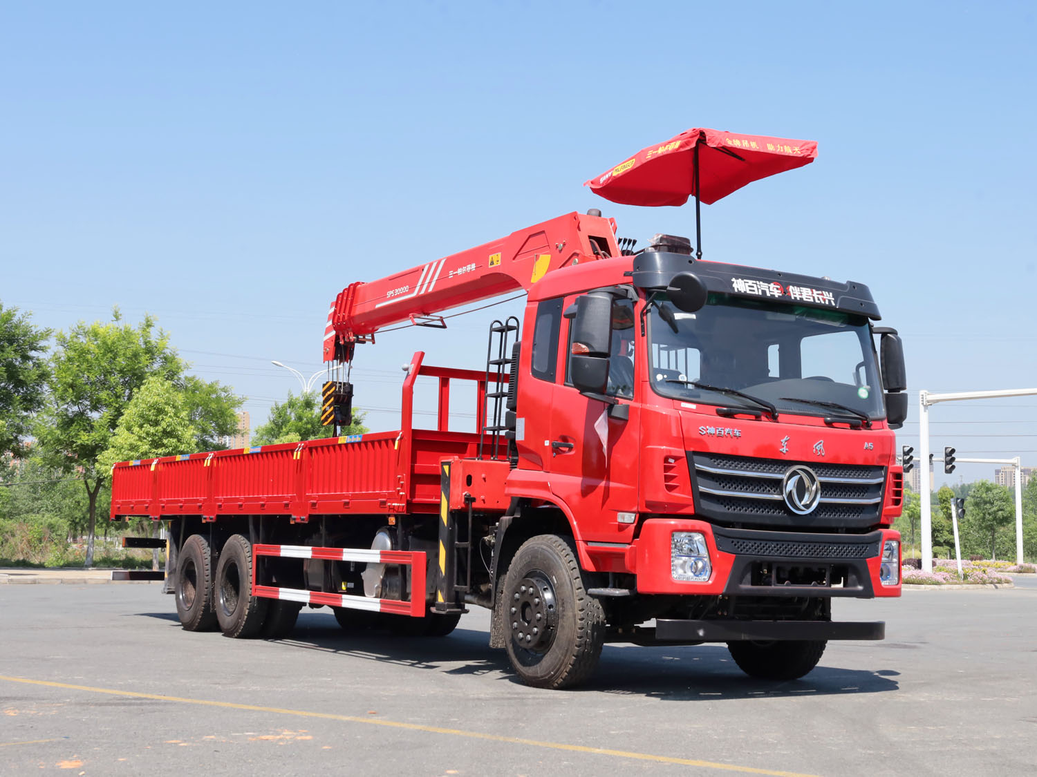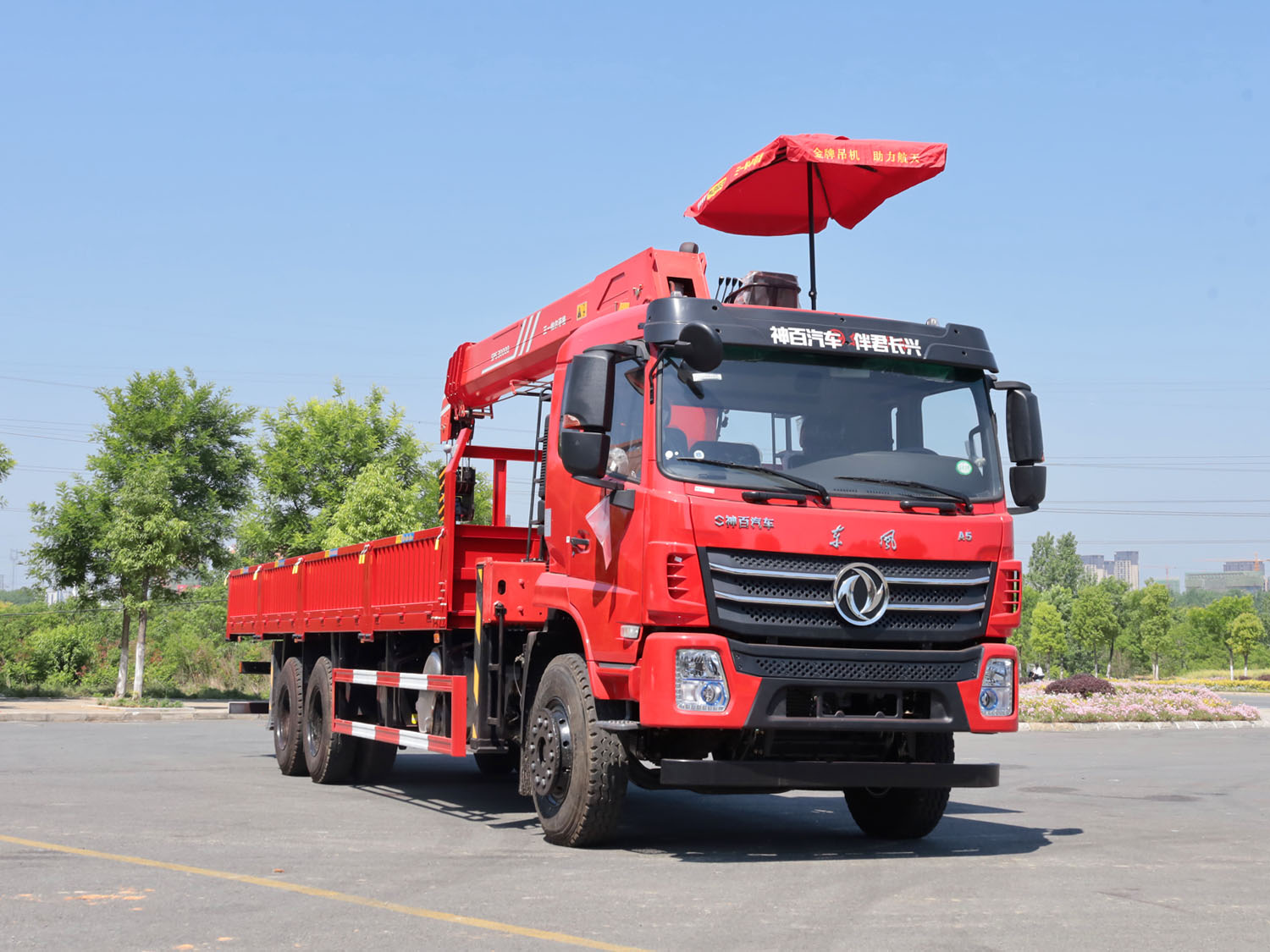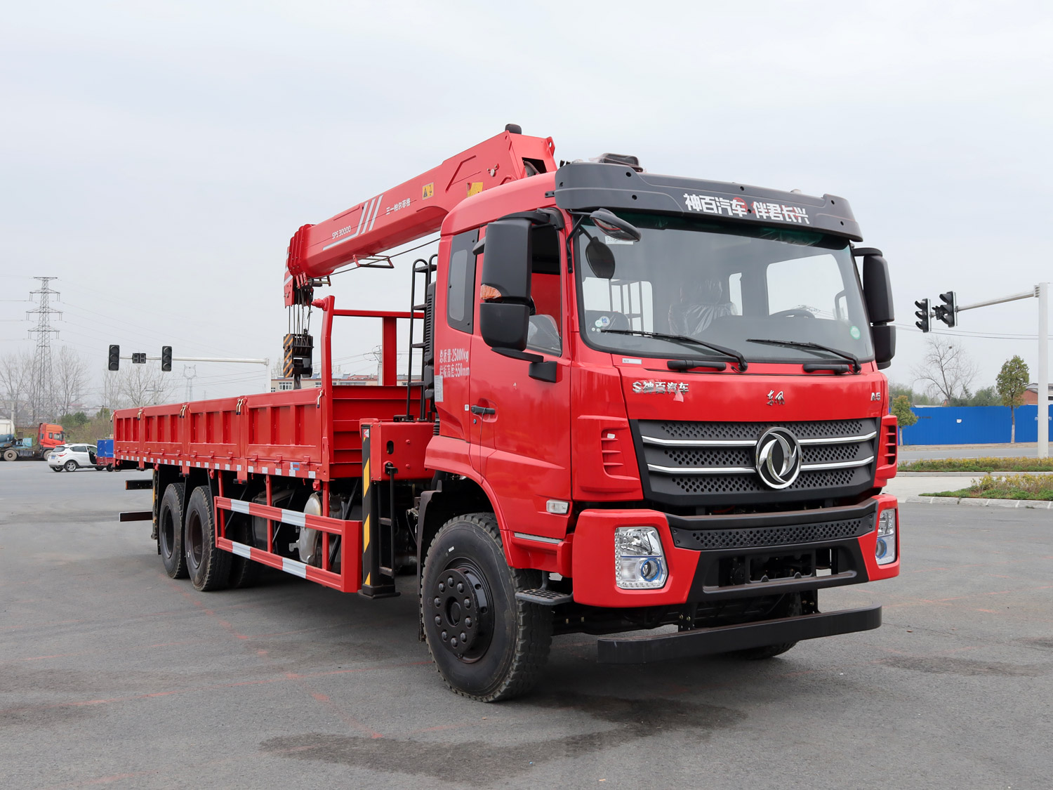 東風(fēng)華神F5駕駛室后雙橋上裝三一12噸直臂式吊機(jī)