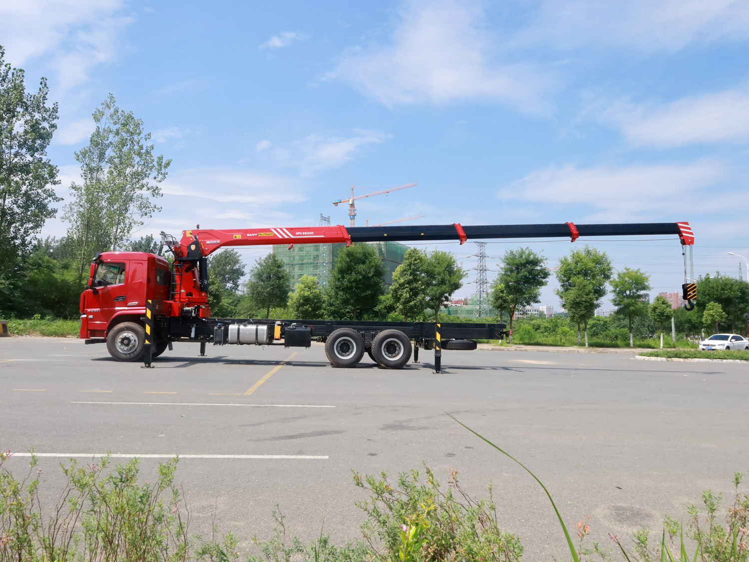 陜汽德龍新M3000駕駛室前四后八上裝長(zhǎng)興14噸直臂式吊機(jī)