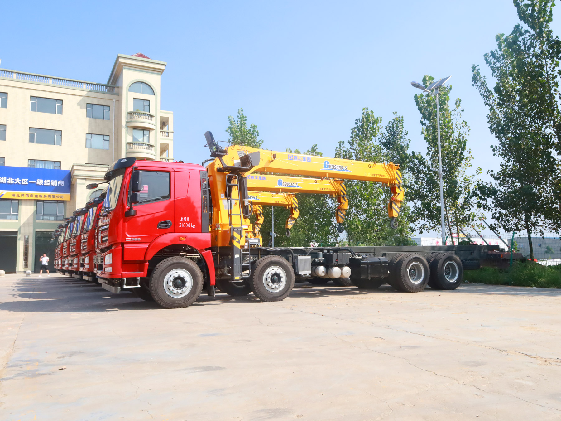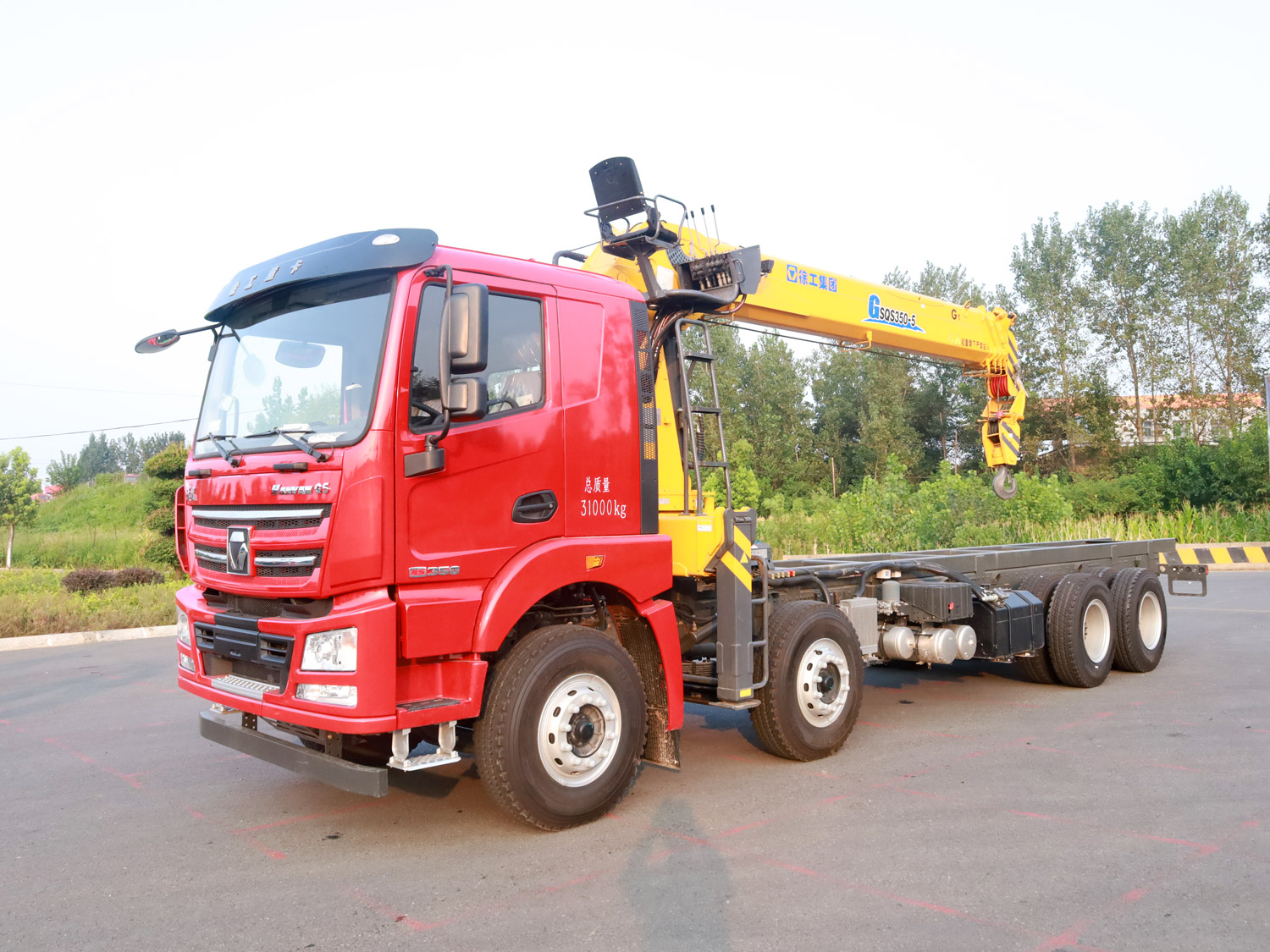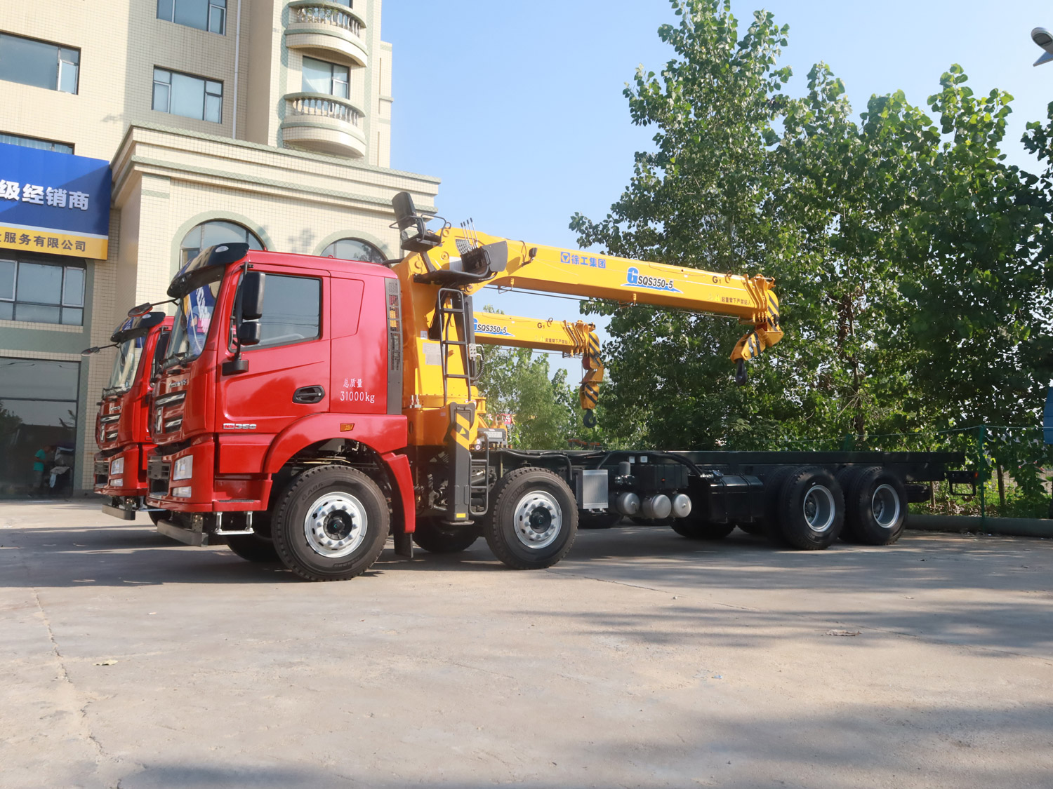 陜汽德龍新M3000駕駛室前四后八上裝三一14噸直臂式吊機(jī)