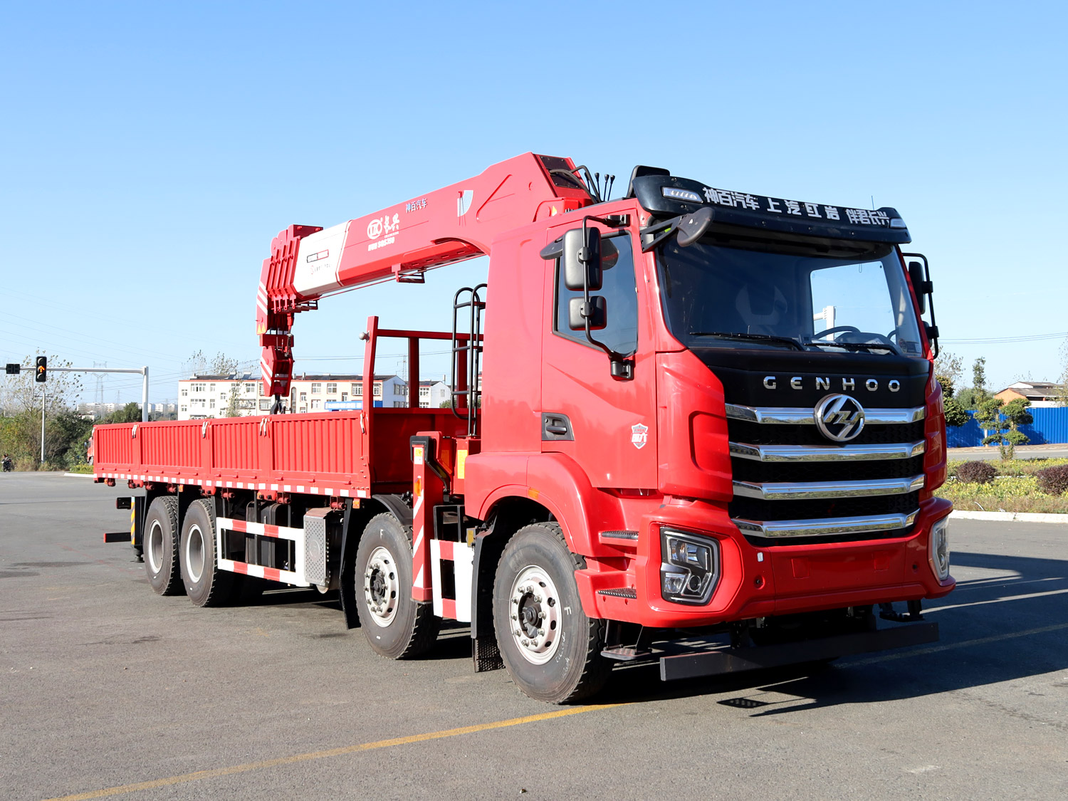 上汽紅巖杰虎H6前四后八上裝長(zhǎng)興14噸直臂式吊機(jī)
