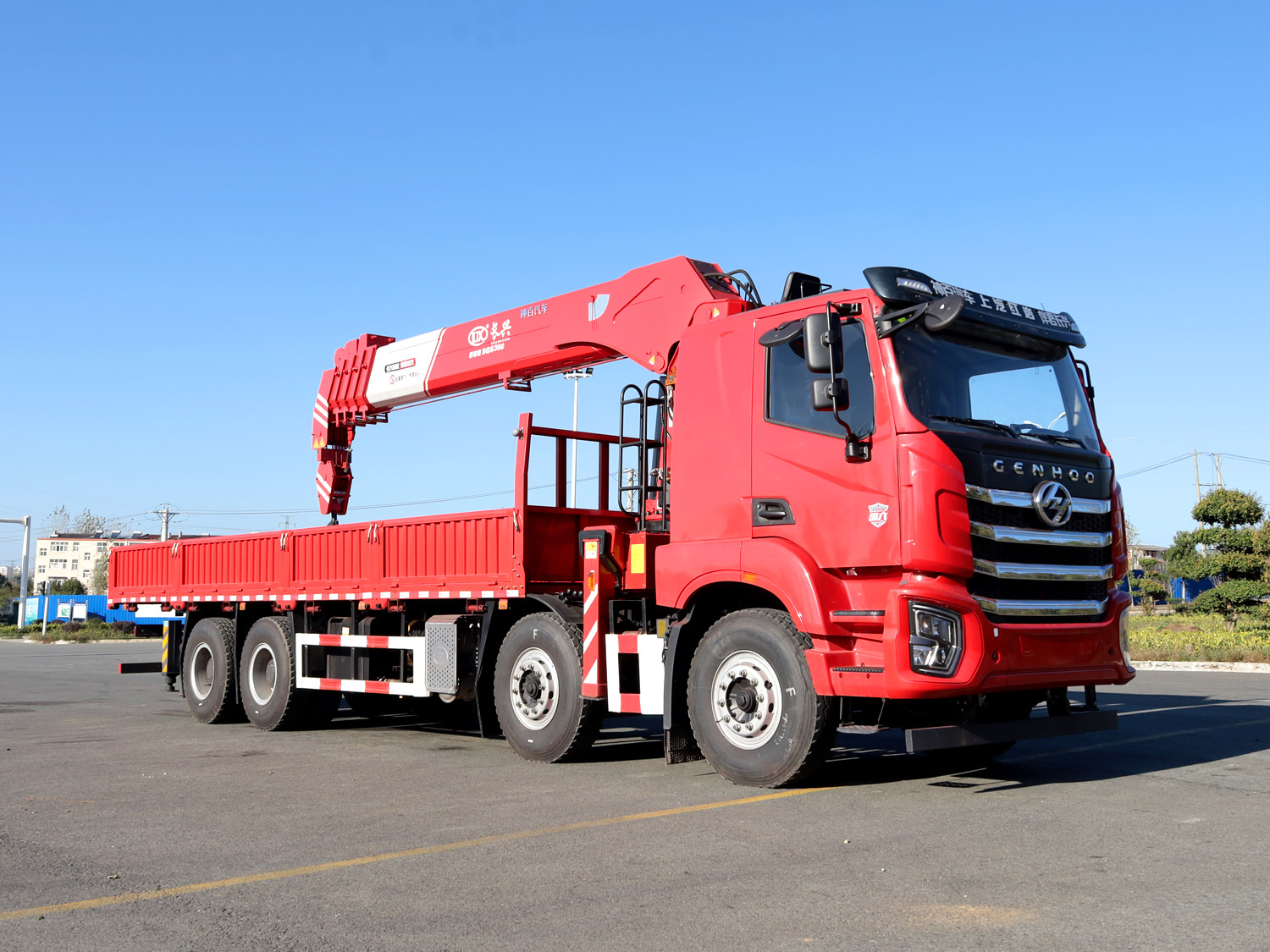 東風(fēng)華神F5駕駛室后雙橋上裝長(zhǎng)興14噸直臂式吊機(jī)