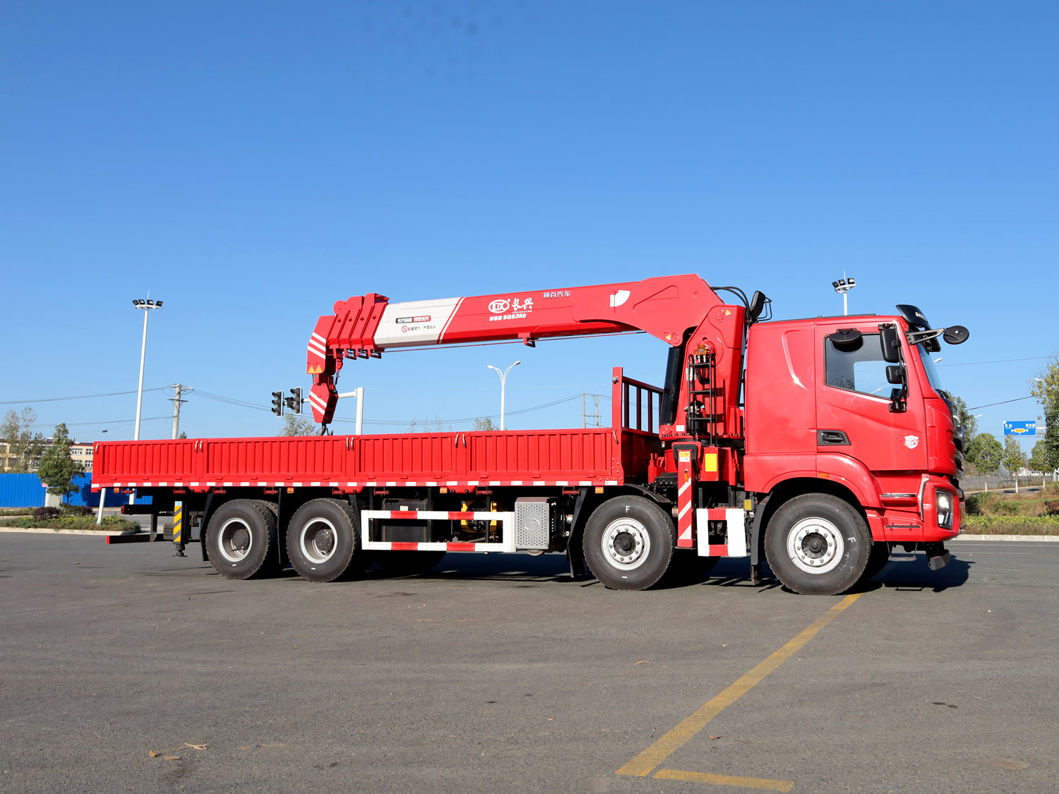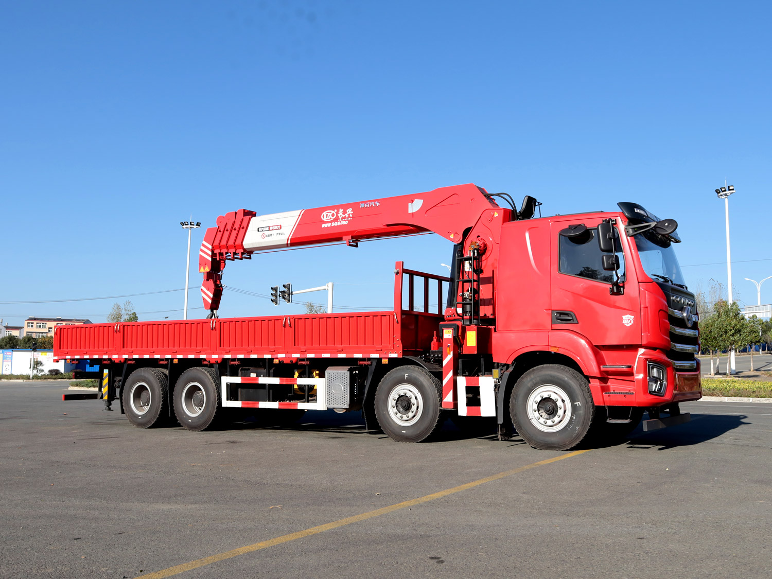 陜汽德龍新M3000駕駛室前四后八上裝三一14噸直臂式吊機(jī)