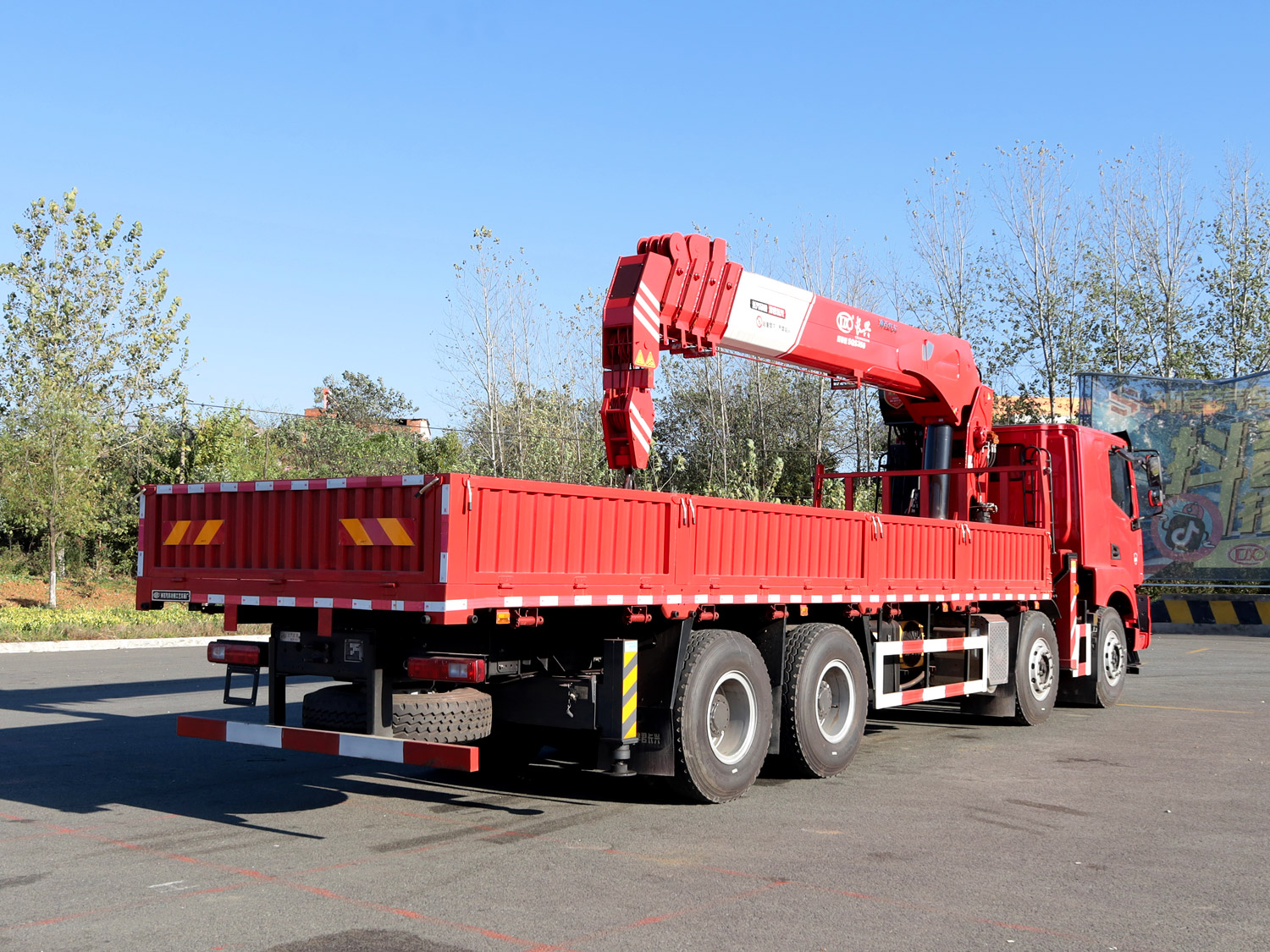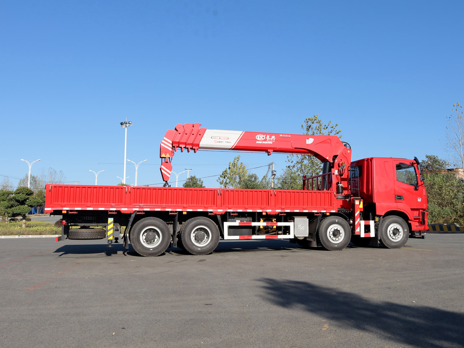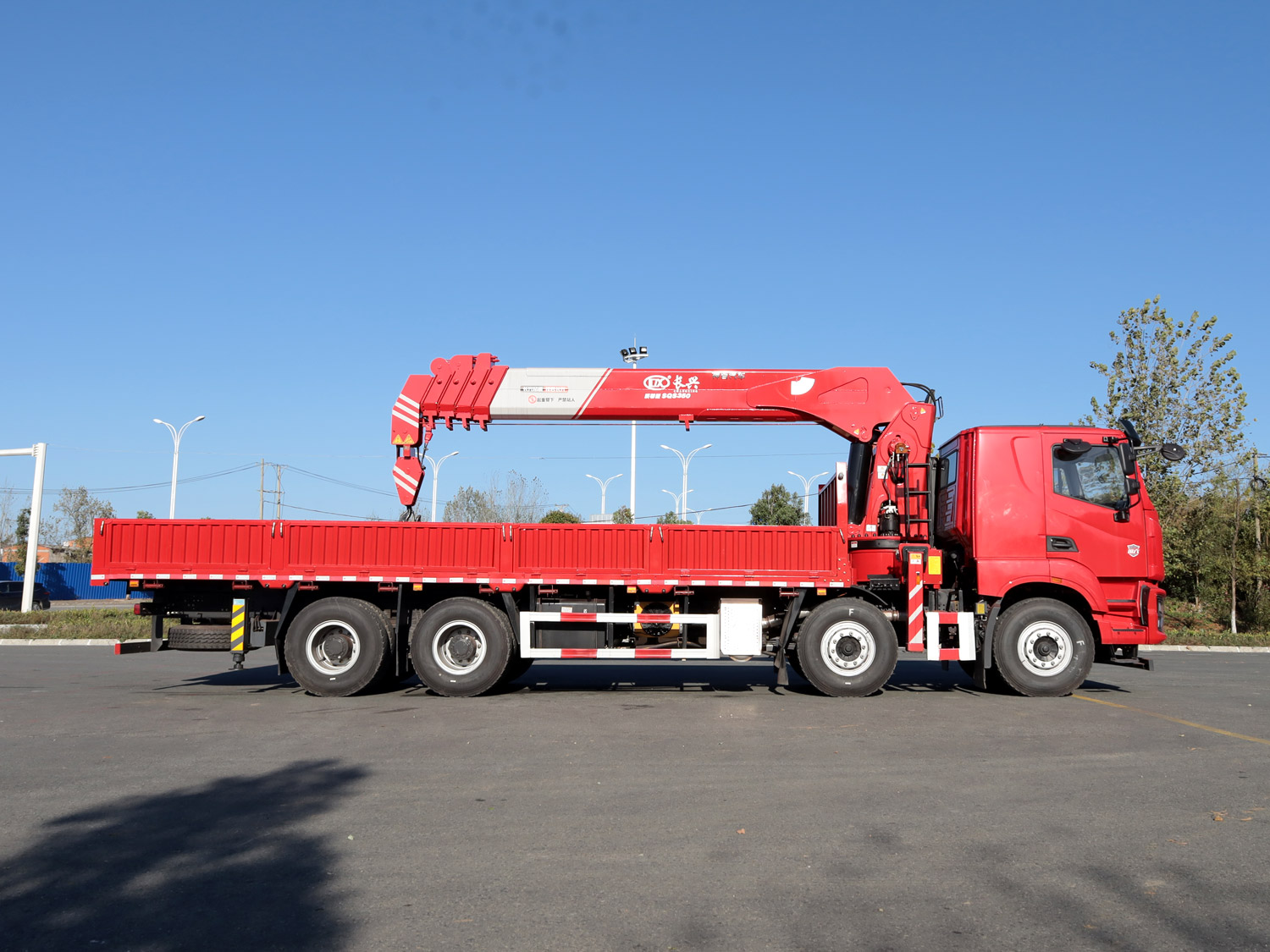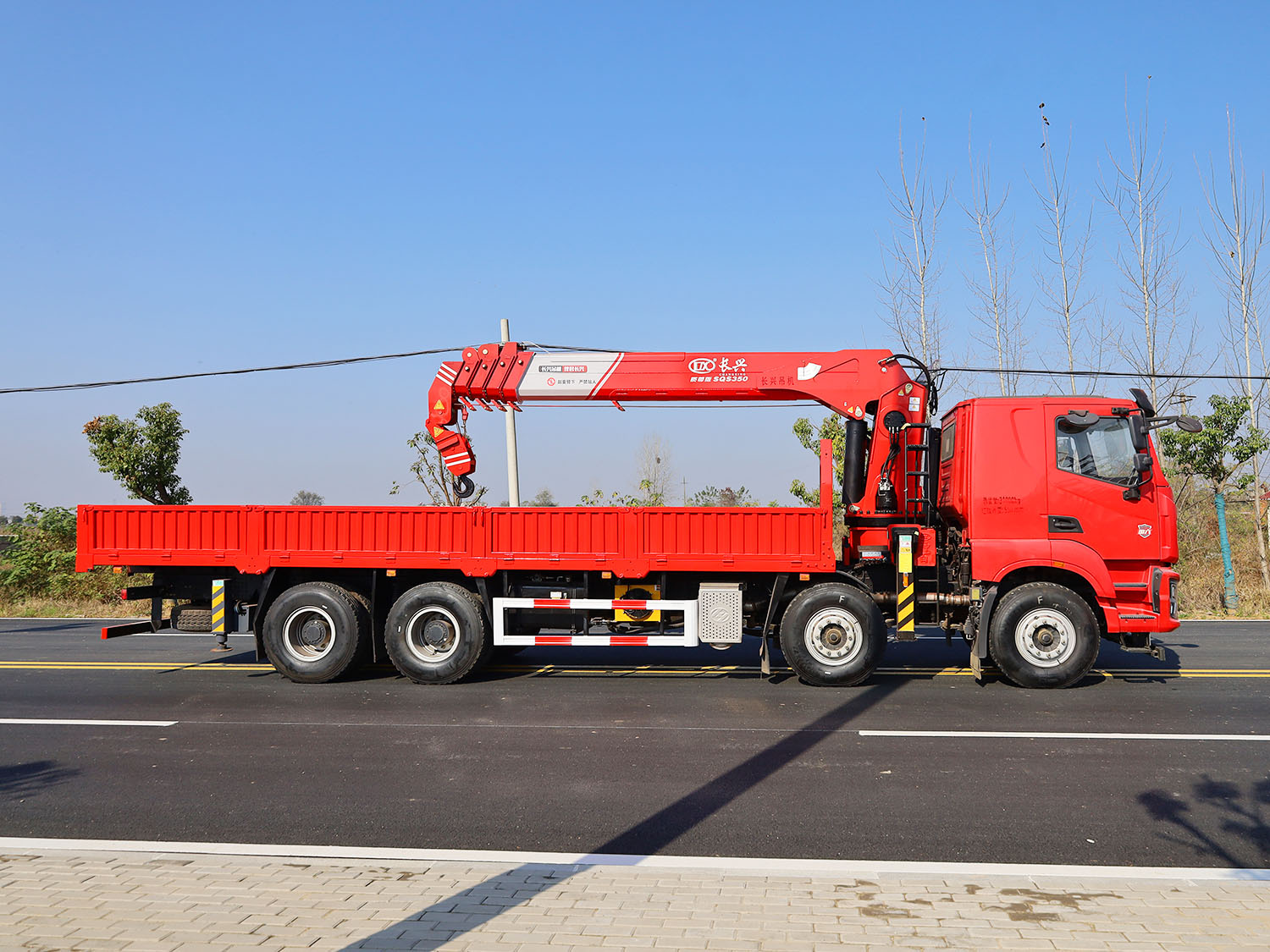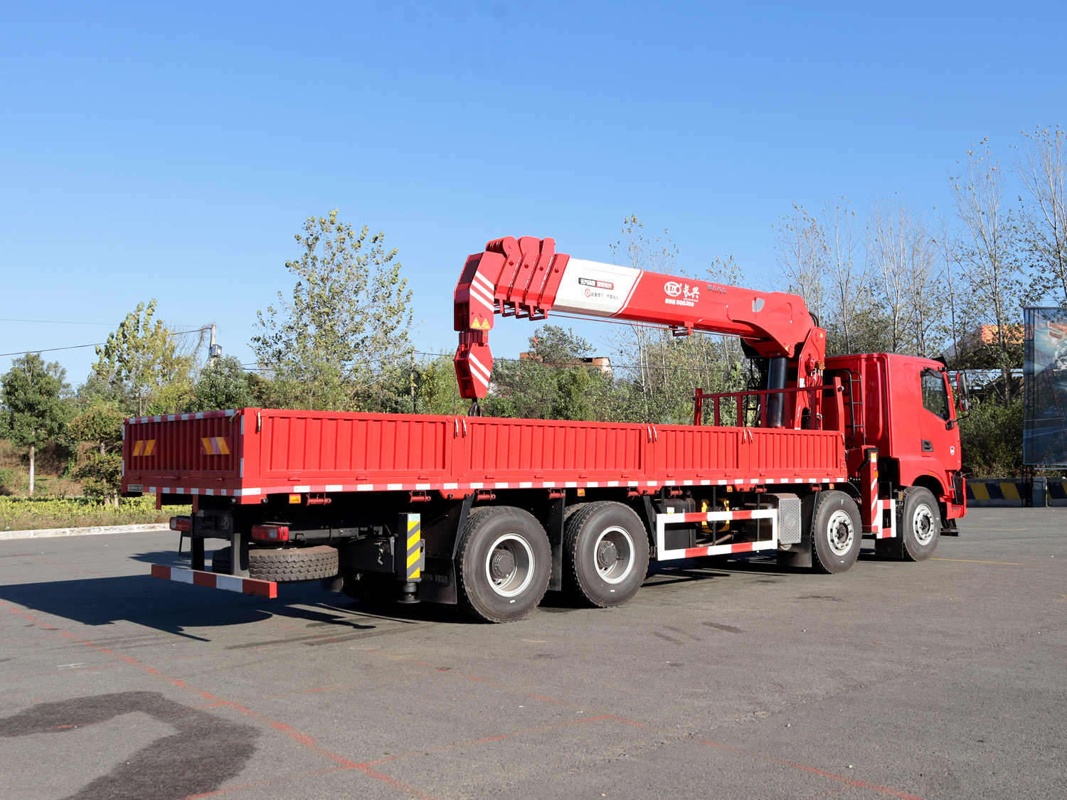 陜汽德龍新M3000駕駛室前四后八上裝長(zhǎng)興14噸直臂式吊機(jī)