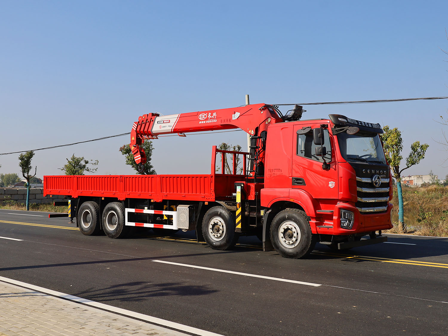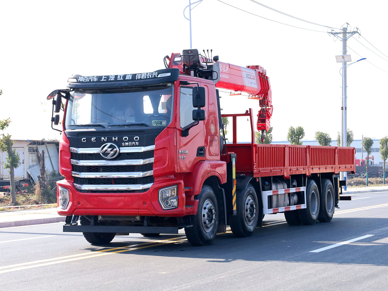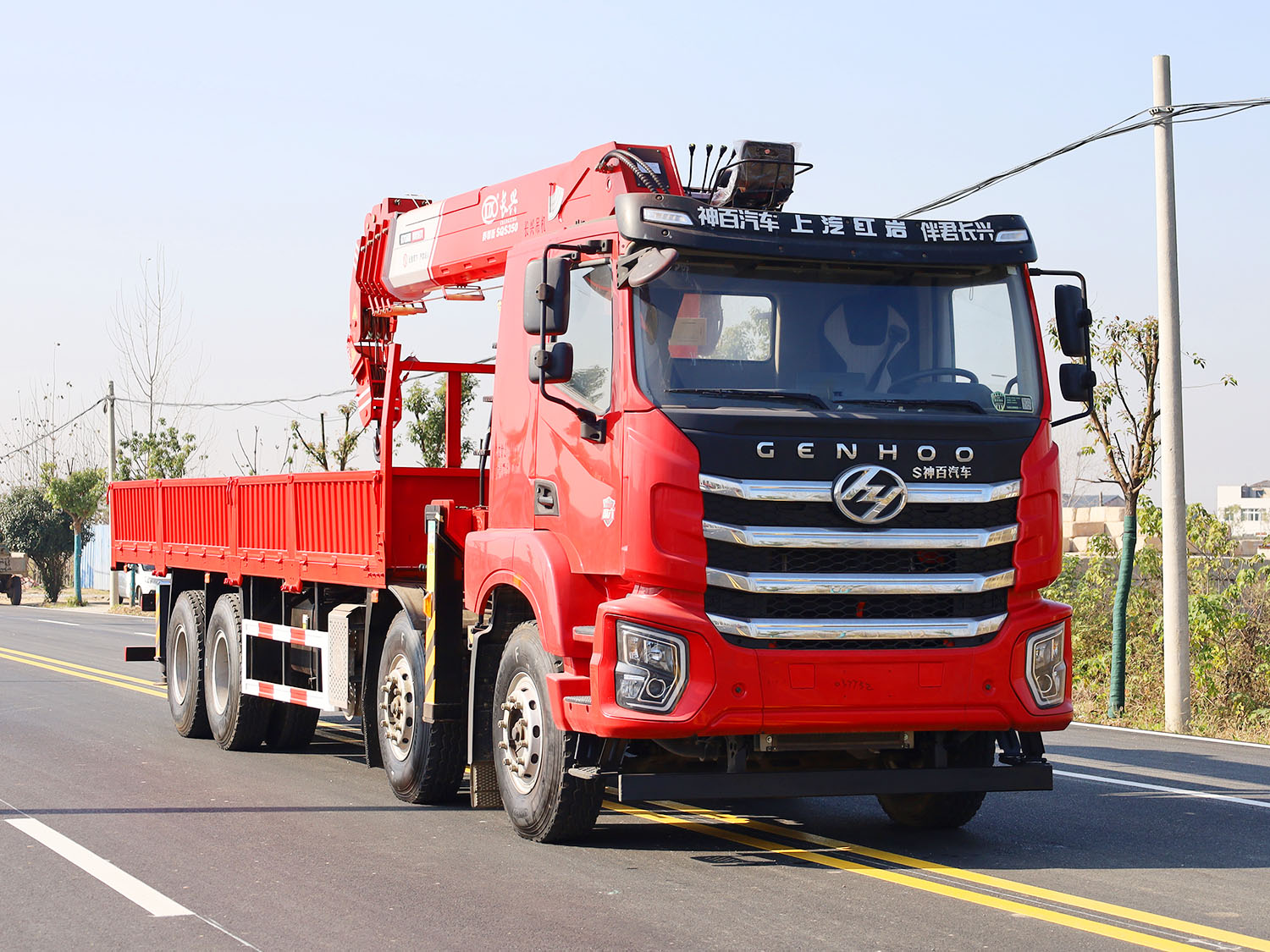陜汽軒德翼6后雙橋上裝長(zhǎng)興14噸直臂式吊機(jī)