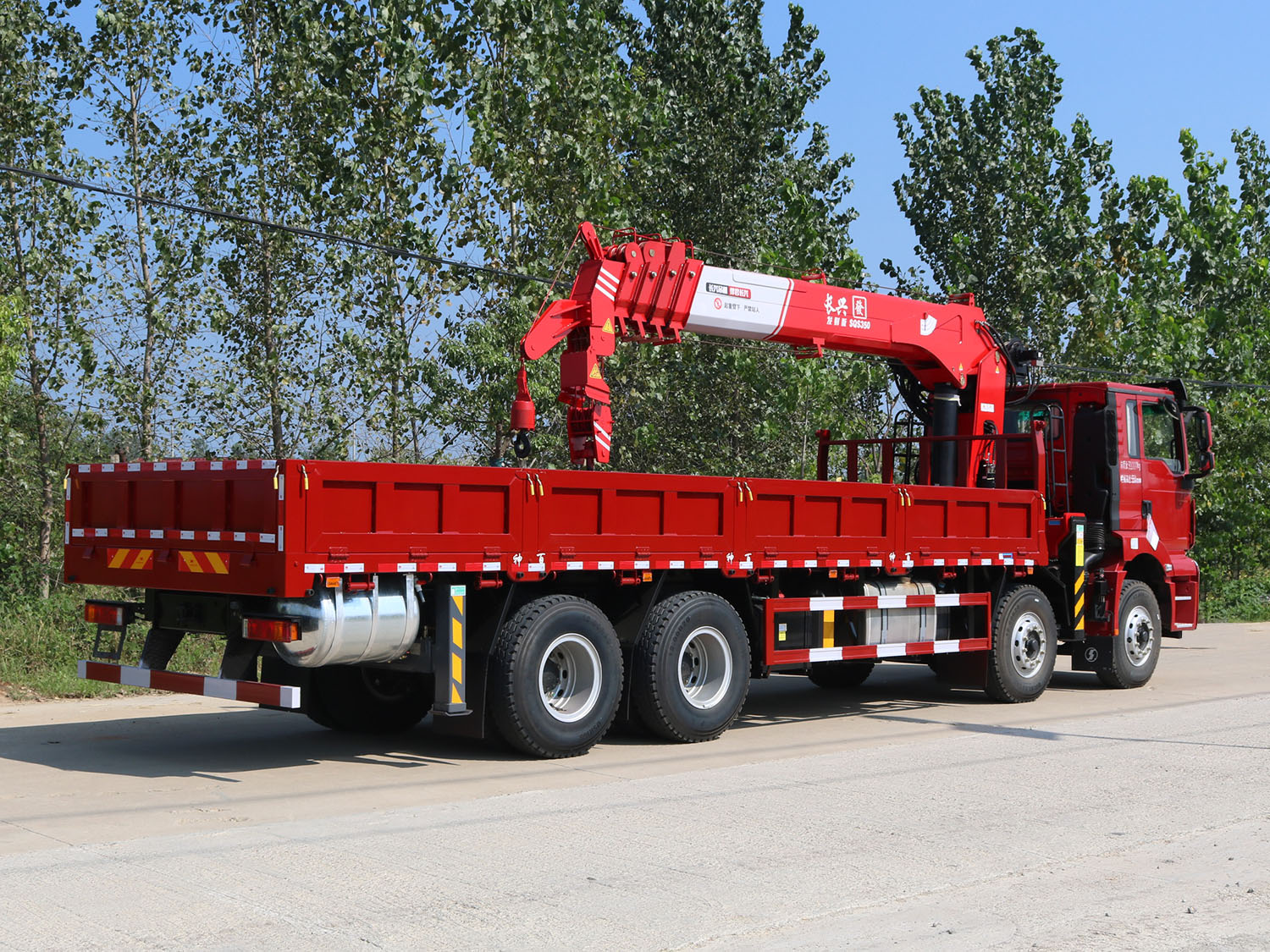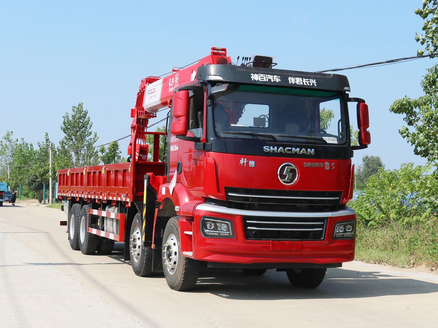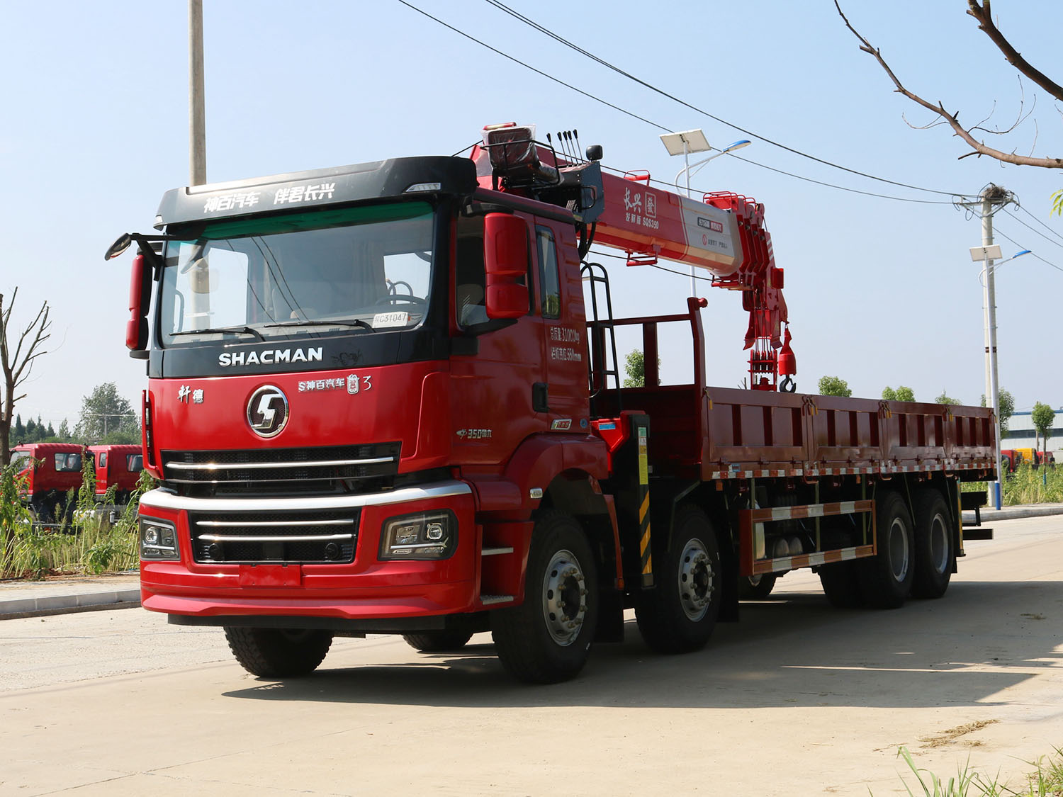 陜汽德龍新M3000駕駛室前四后八上裝三一14噸直臂式吊機