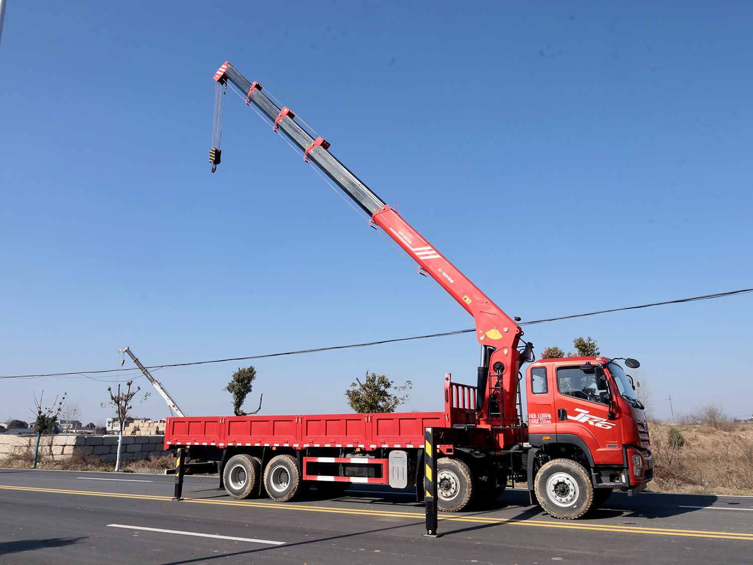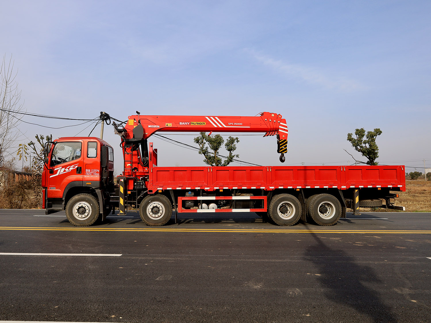 陜汽德龍新M3000駕駛室前四后八上裝三一14噸直臂式吊機