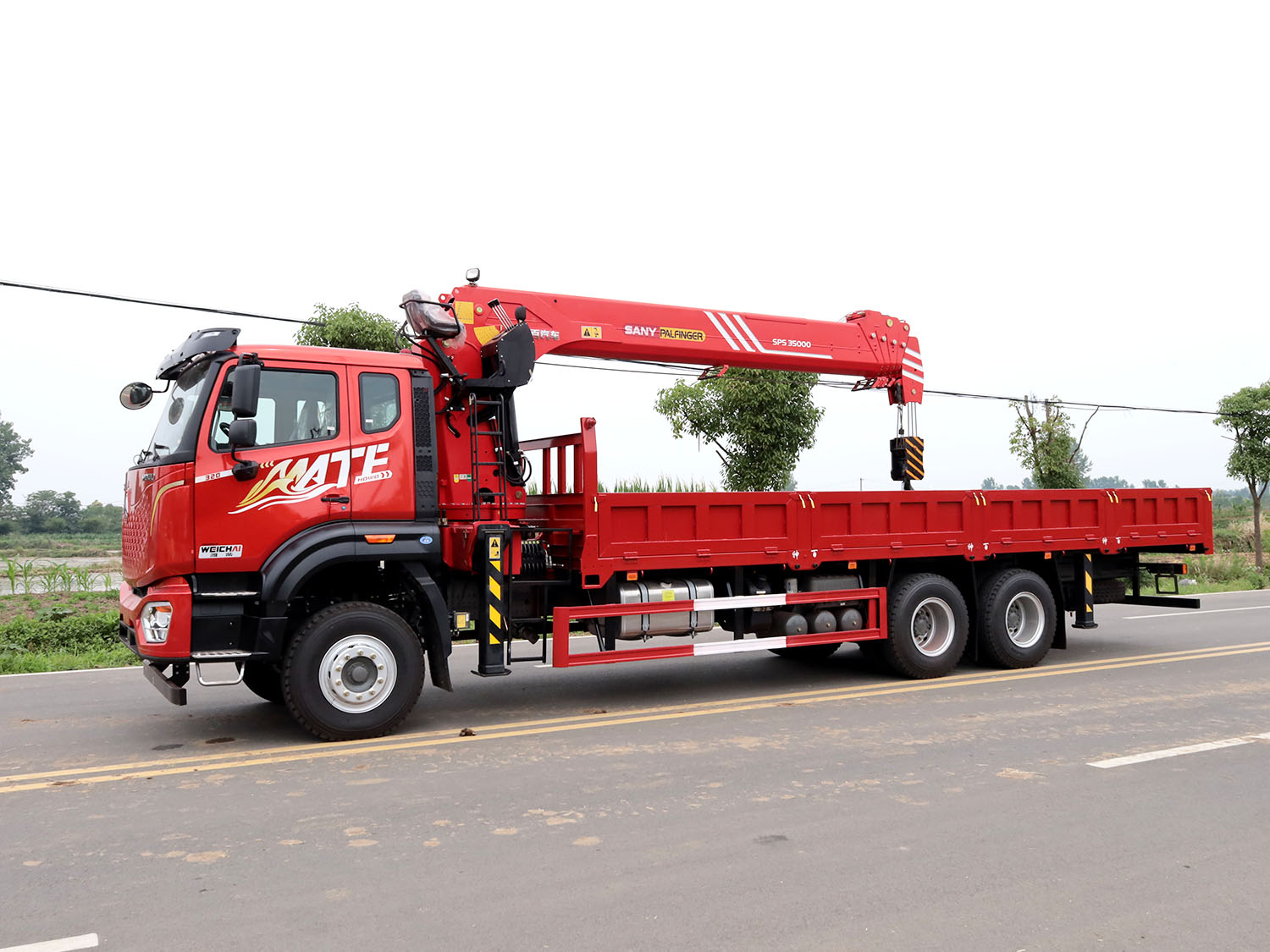 陜汽德龍新M3000駕駛室前四后八上裝三一14噸直臂式吊機(jī)