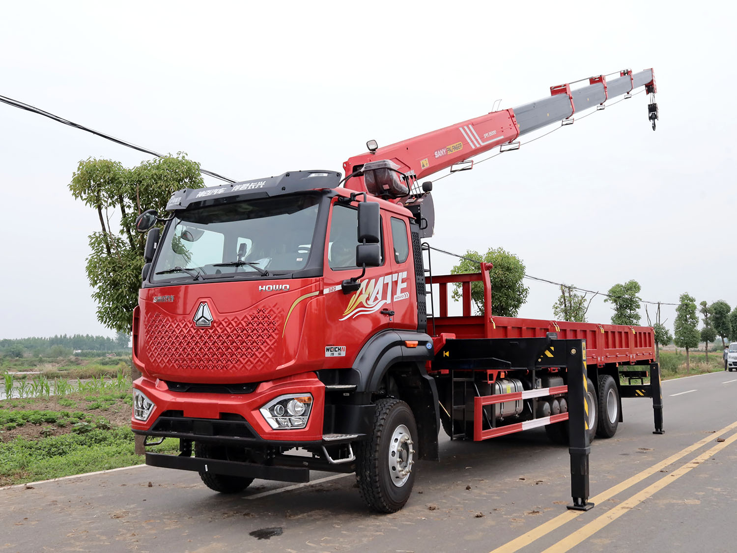 重汽豪沃后雙橋上裝三一14噸直臂式吊機(jī)