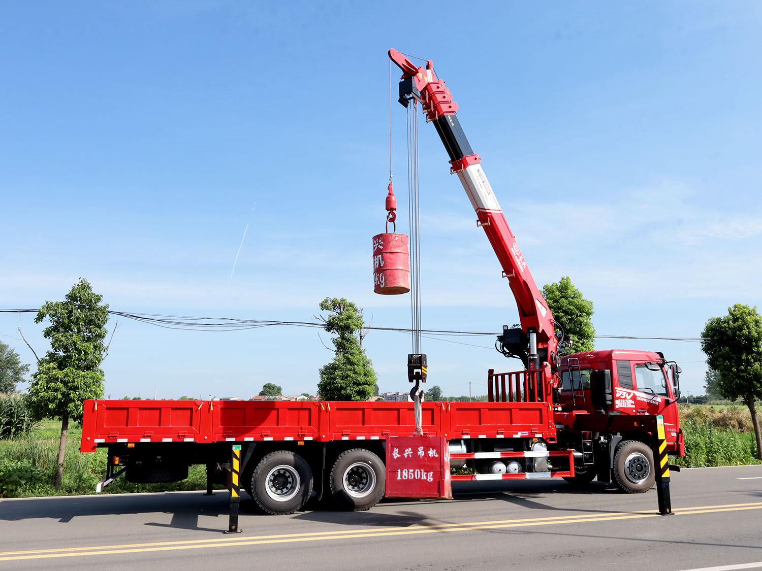 陜汽德龍新M3000駕駛室前四后八上裝長(zhǎng)興14噸直臂式吊機(jī)