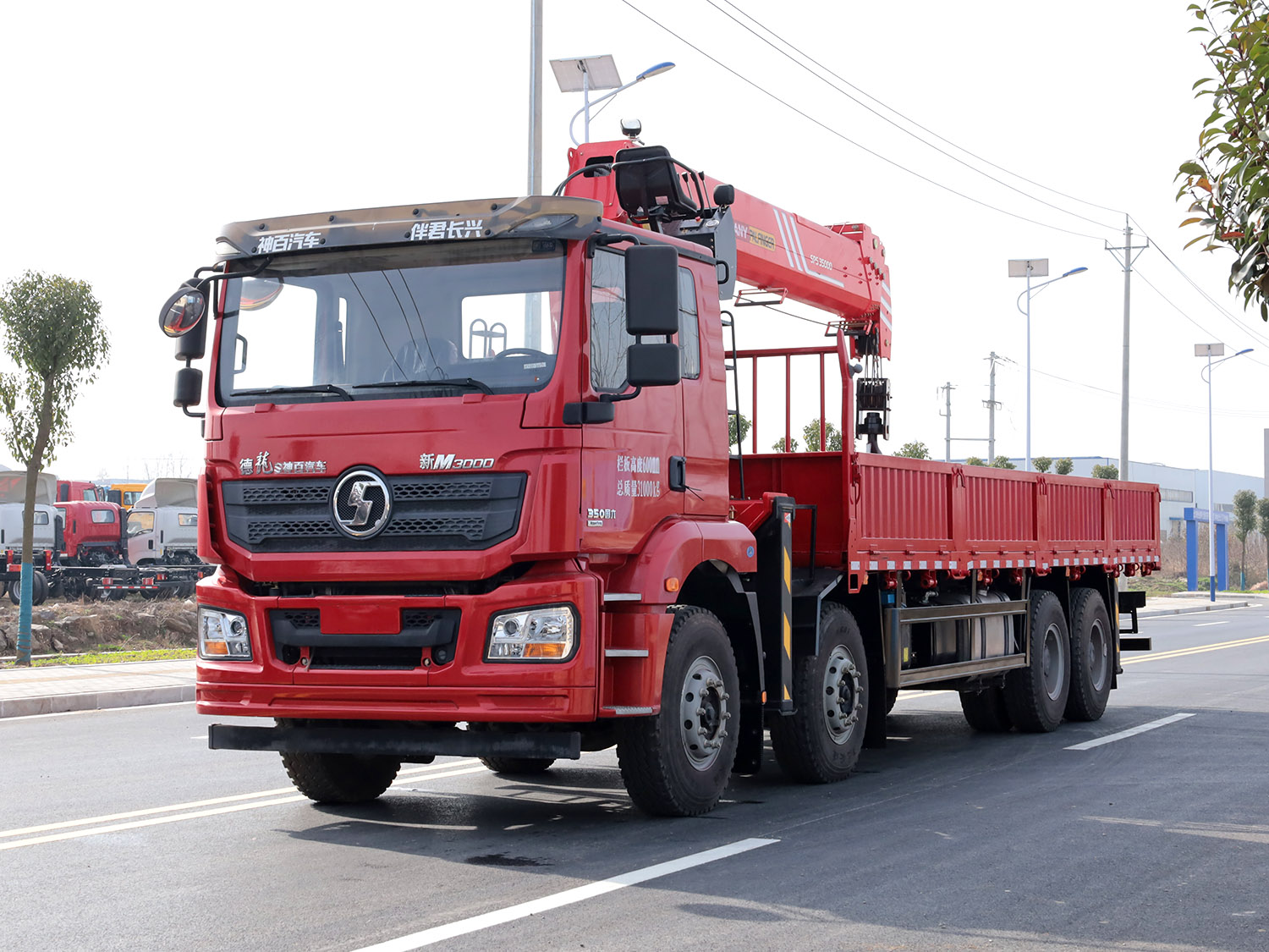 陜汽德龍新M3000駕駛室前四后八上裝三一14噸直臂式吊機(jī)