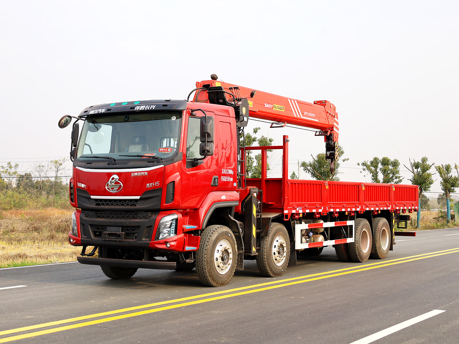 陜汽德龍新M3000駕駛室前四后八上裝三一16噸直臂式吊機