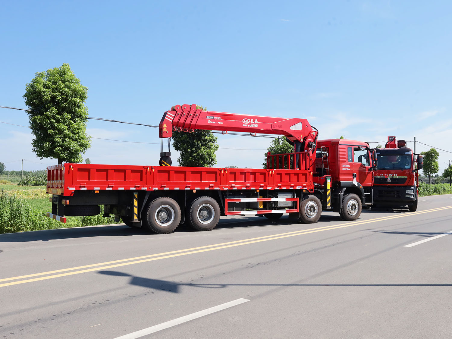 陜汽德龍新M3000駕駛室前四后八上裝三一16噸直臂式吊機