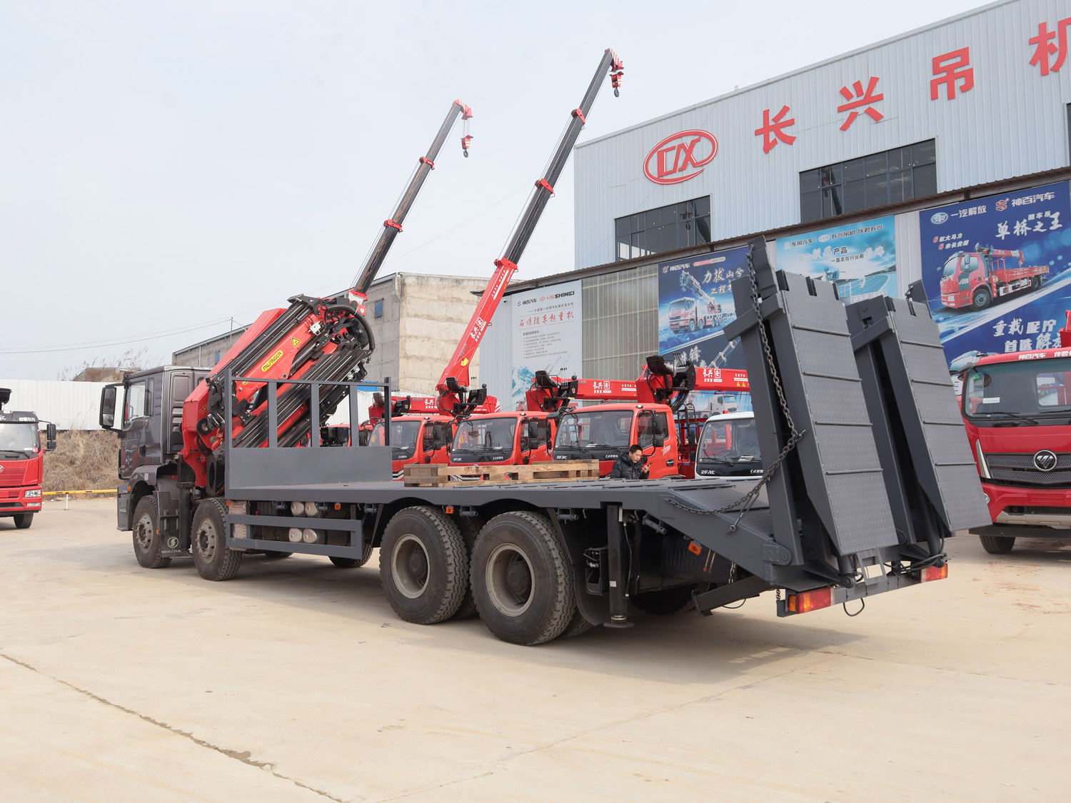 陜汽德龍新M3000駕駛室前四后八上裝三一16噸折臂式吊機