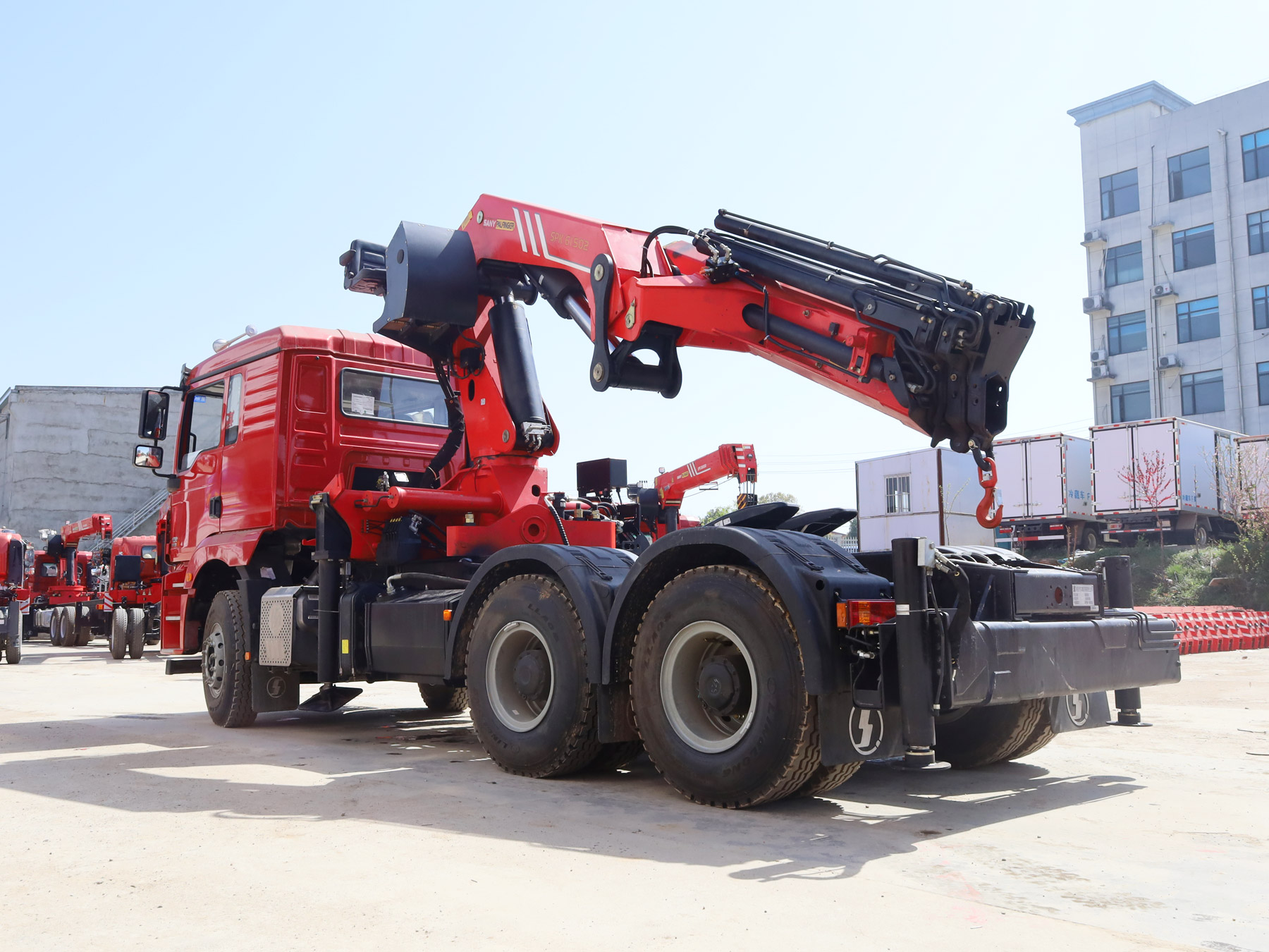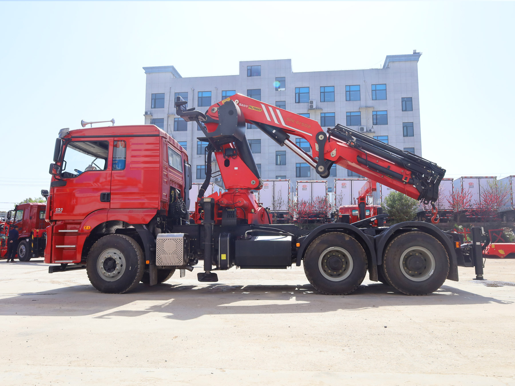 陜汽德龍新M3000牽引頭上裝三一25噸折臂式吊機(jī)