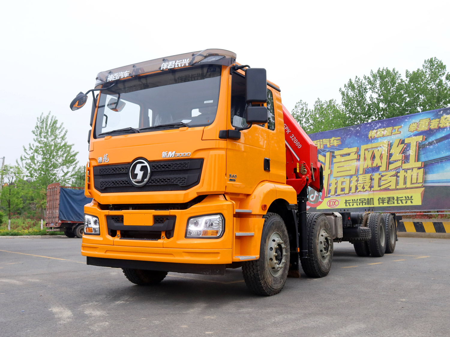 陜汽德龍新M3000駕駛室前四后八上裝三一16噸折臂式吊機(jī)