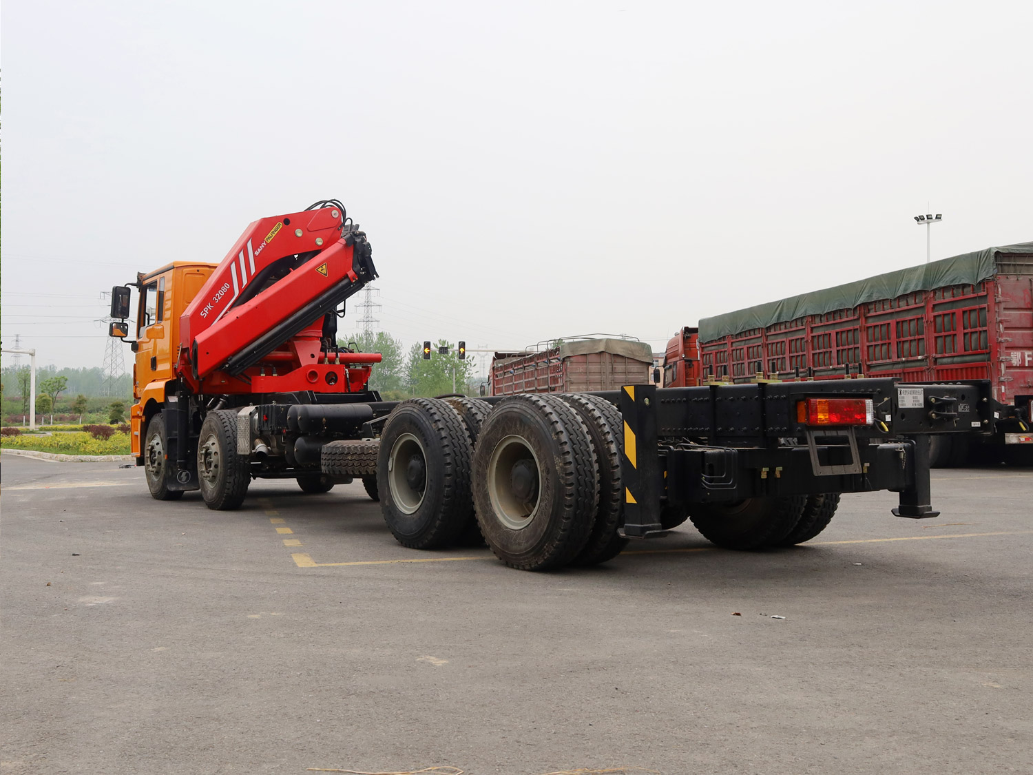 陜汽德龍新M3000牽引頭上裝三一25噸折臂式吊機(jī)