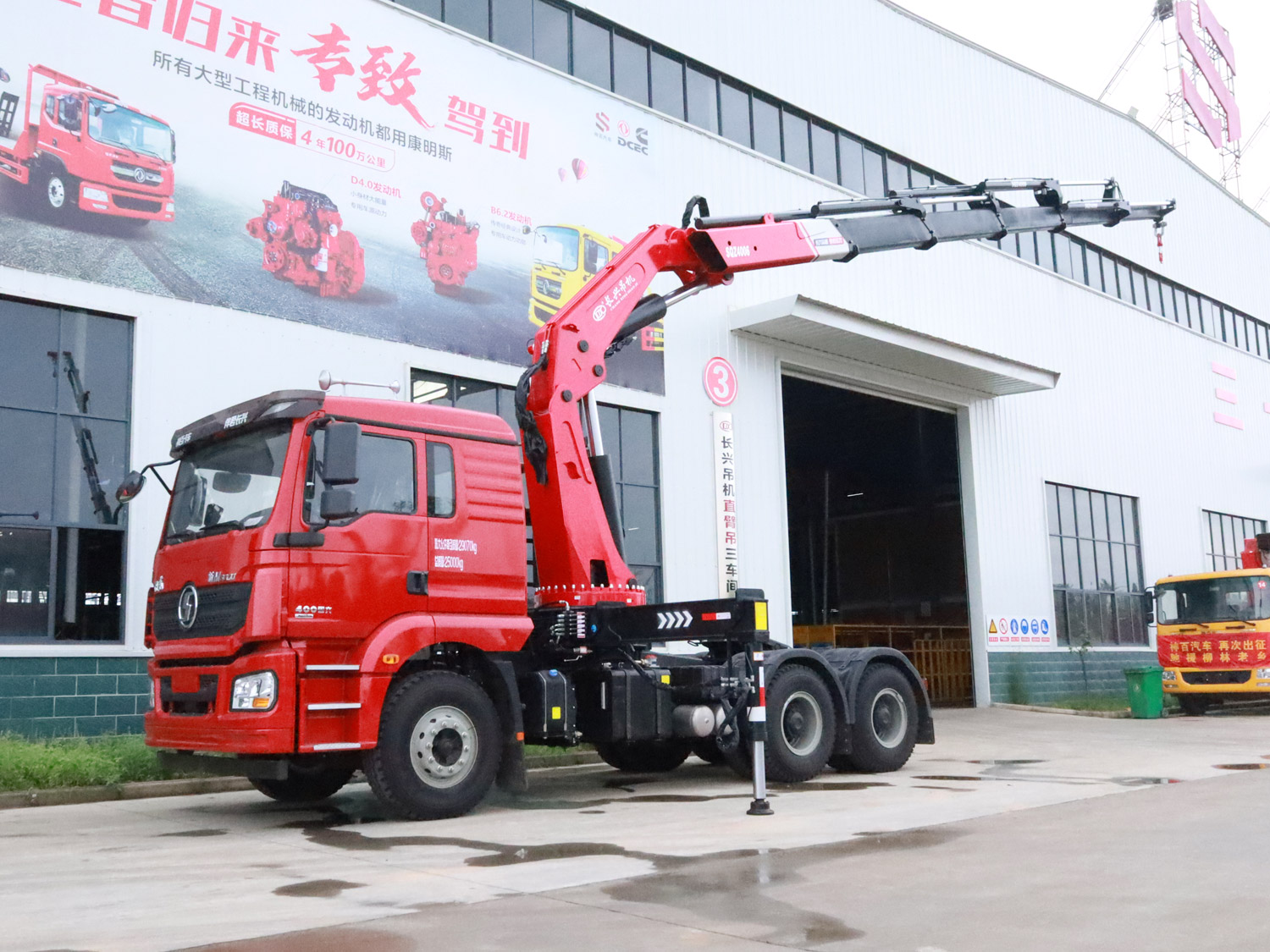 陜汽德龍新M3000駕駛室前四后八上裝長(zhǎng)興25噸折臂式吊機(jī)