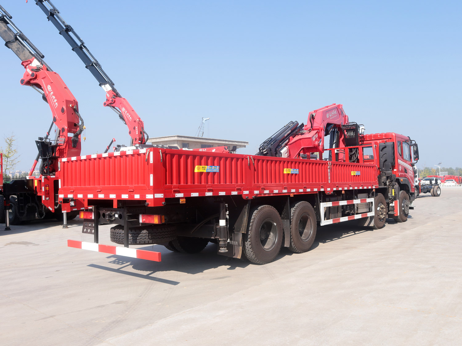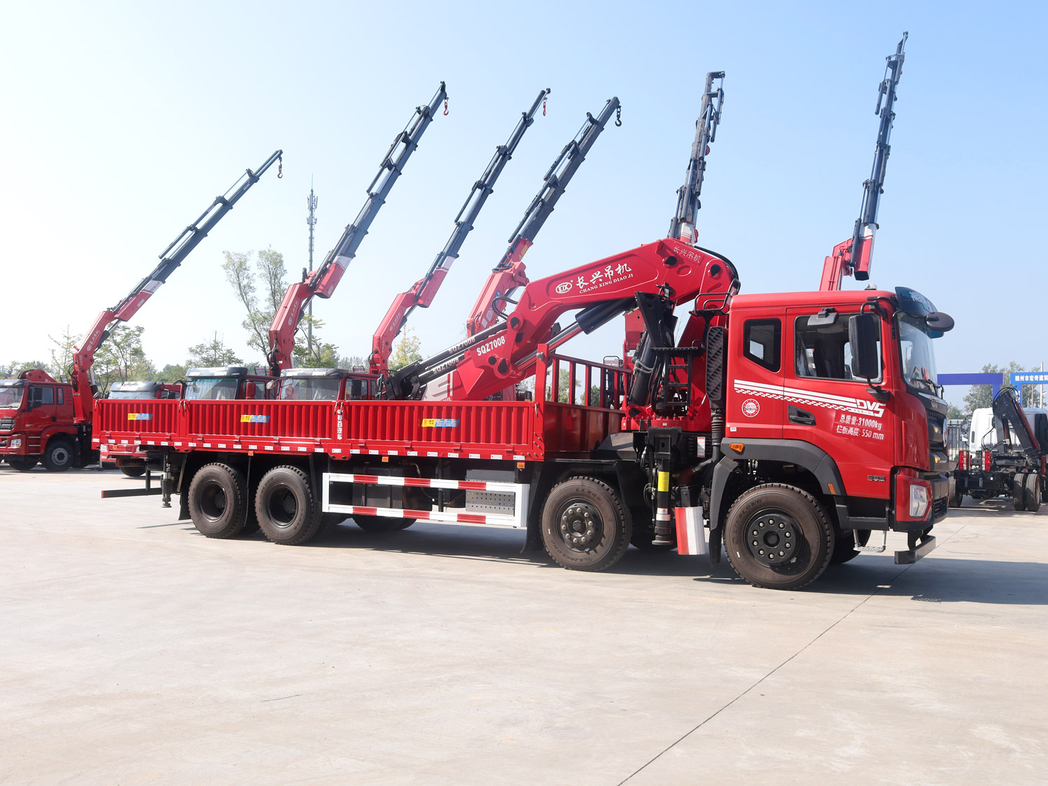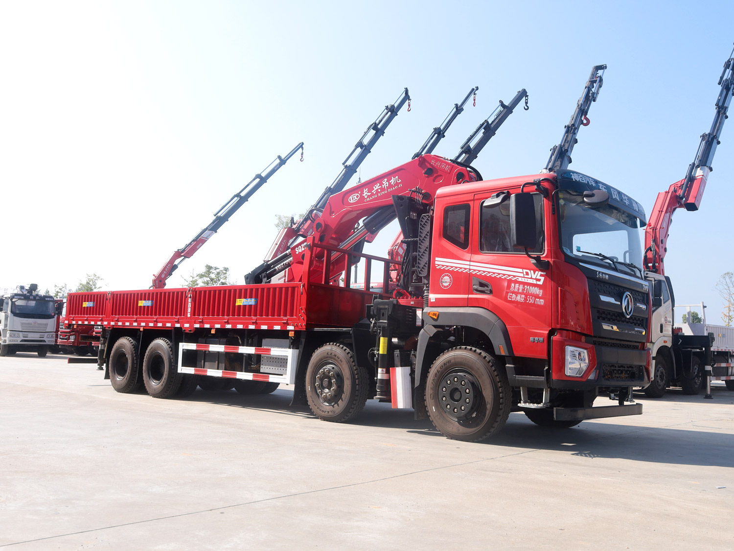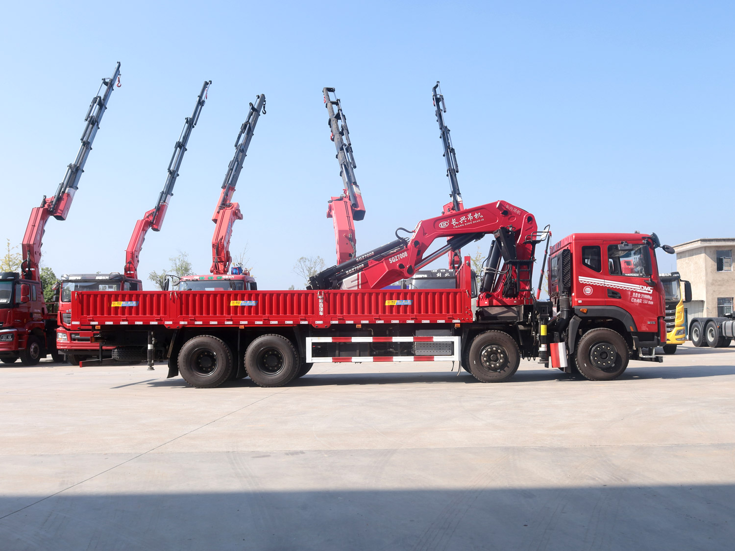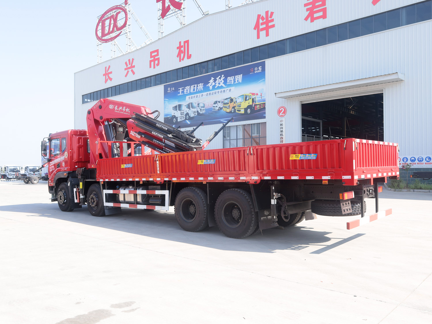 陜汽德龍新M3000駕駛室前四后八上裝長(zhǎng)興25噸折臂式吊機(jī)