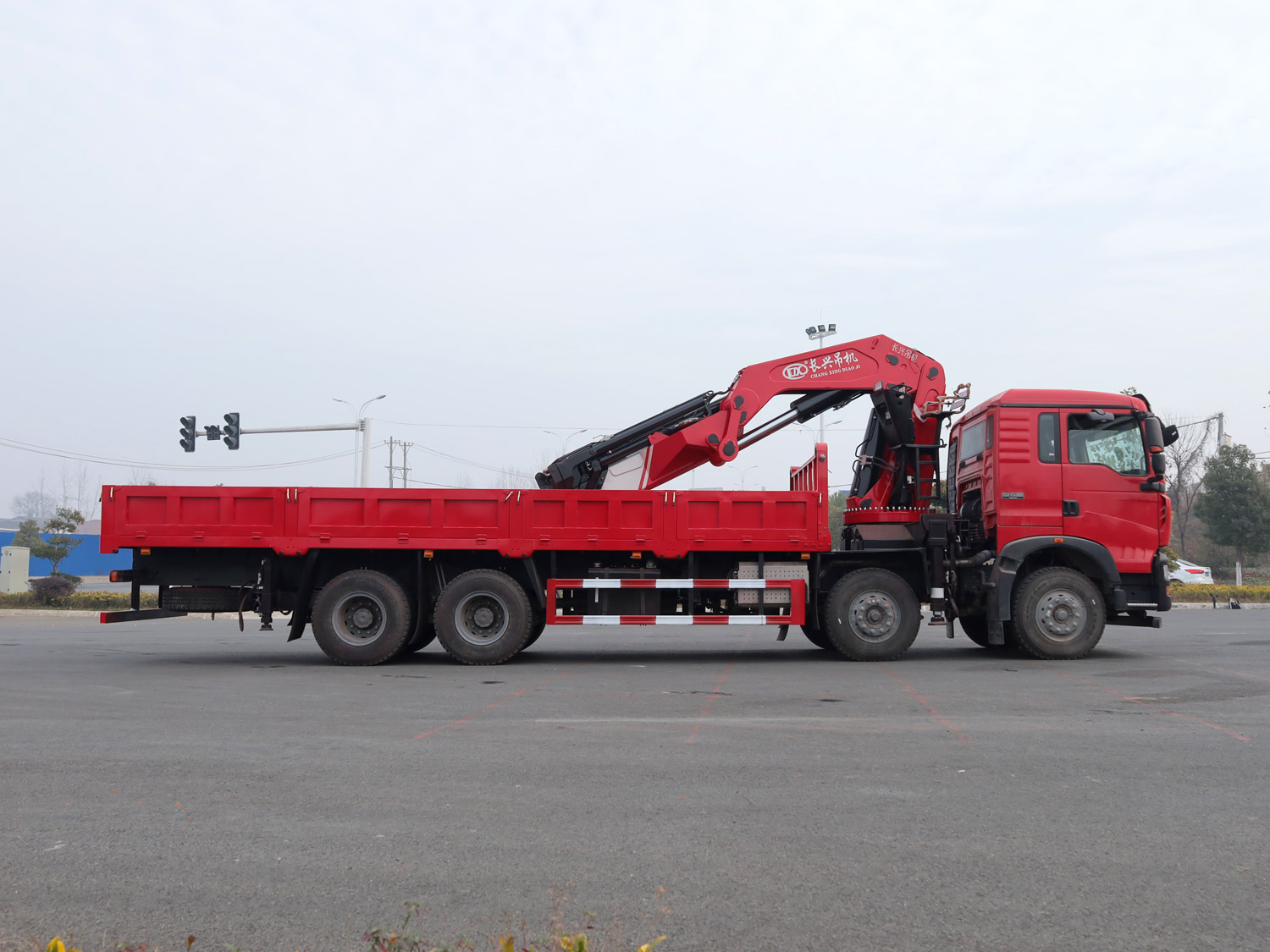 陜汽德龍新M3000駕駛室前四后八上裝長(zhǎng)興35噸折臂式吊機(jī)