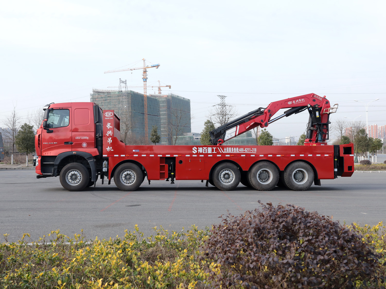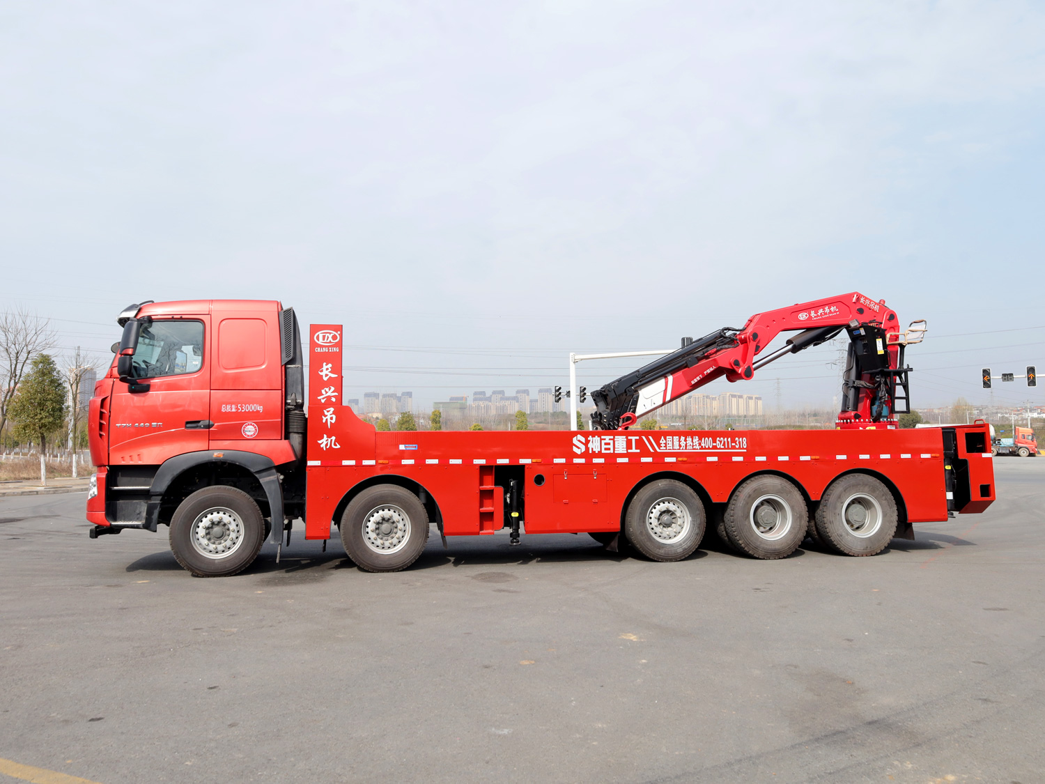 陜汽德龍新M3000駕駛室前四后八上裝長(zhǎng)興35噸折臂式吊機(jī)