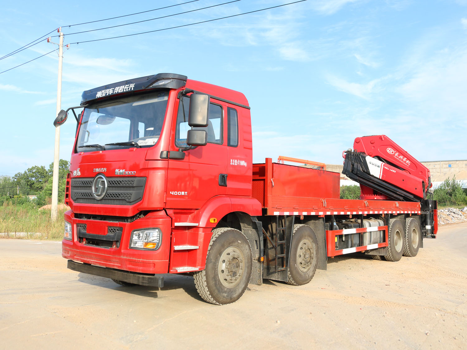 陜汽德龍新M3000駕駛室前四后八上裝長(zhǎng)興25噸折臂式吊機(jī)