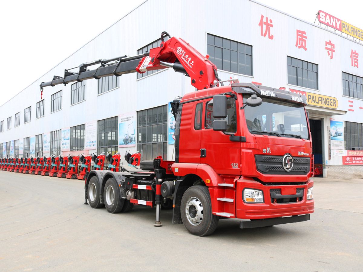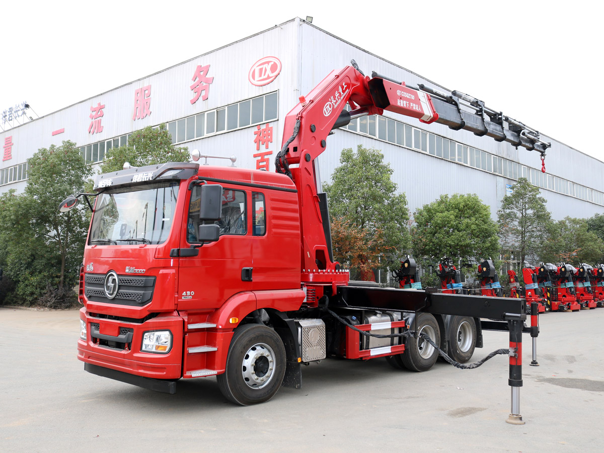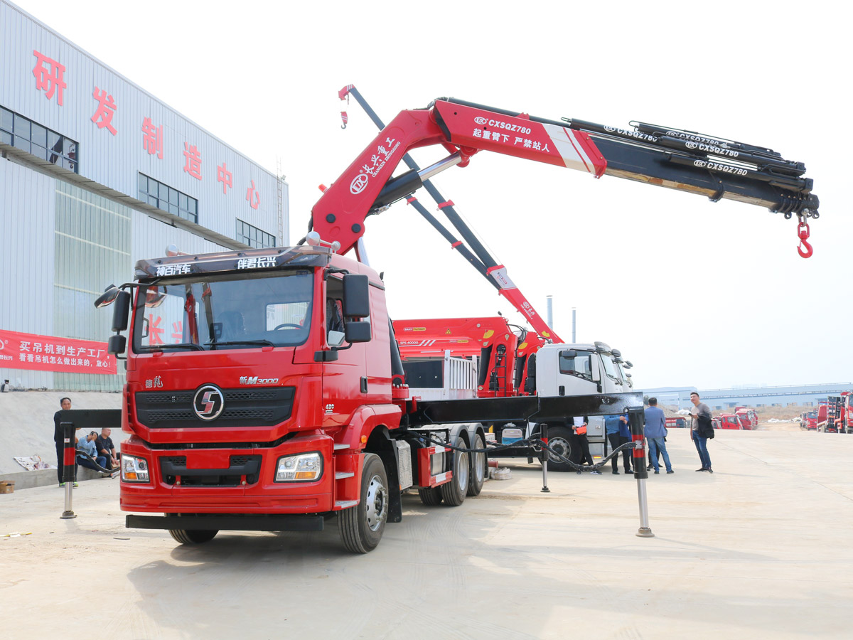 陜汽德龍新M3000駕駛室前四后八上裝長(zhǎng)興25噸折臂式吊機(jī)