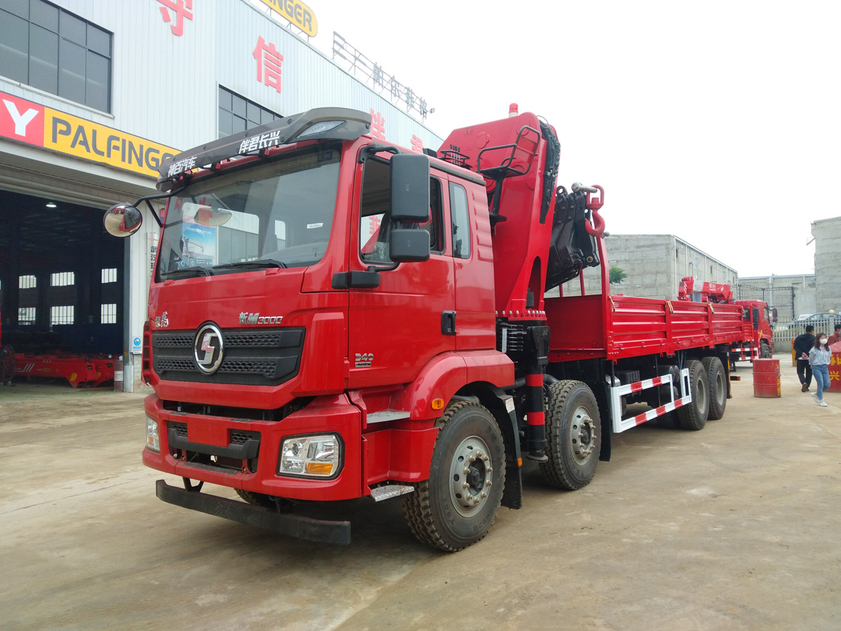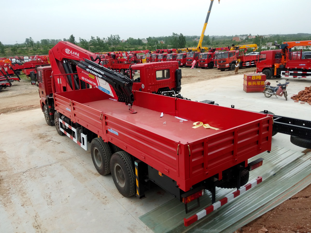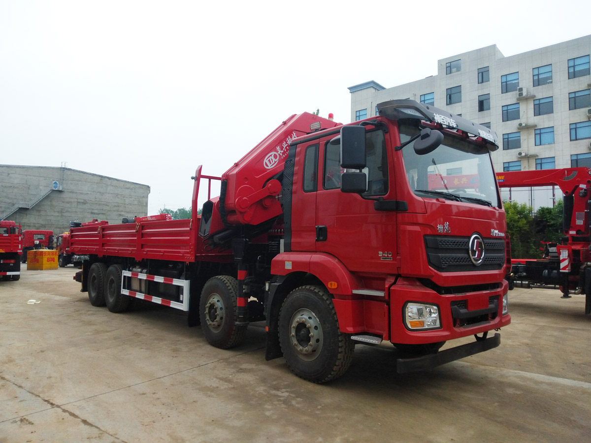 陜汽德龍新M3000駕駛室前四后八上裝長(zhǎng)興25噸折臂式吊機(jī)