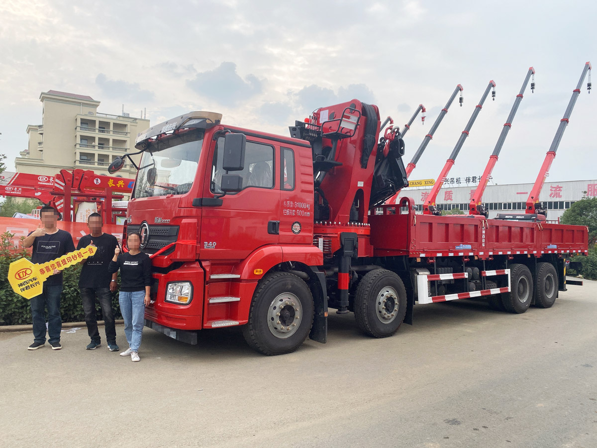 陜汽德龍新M3000駕駛室前四后八上裝長(zhǎng)興35噸折臂式吊機(jī)