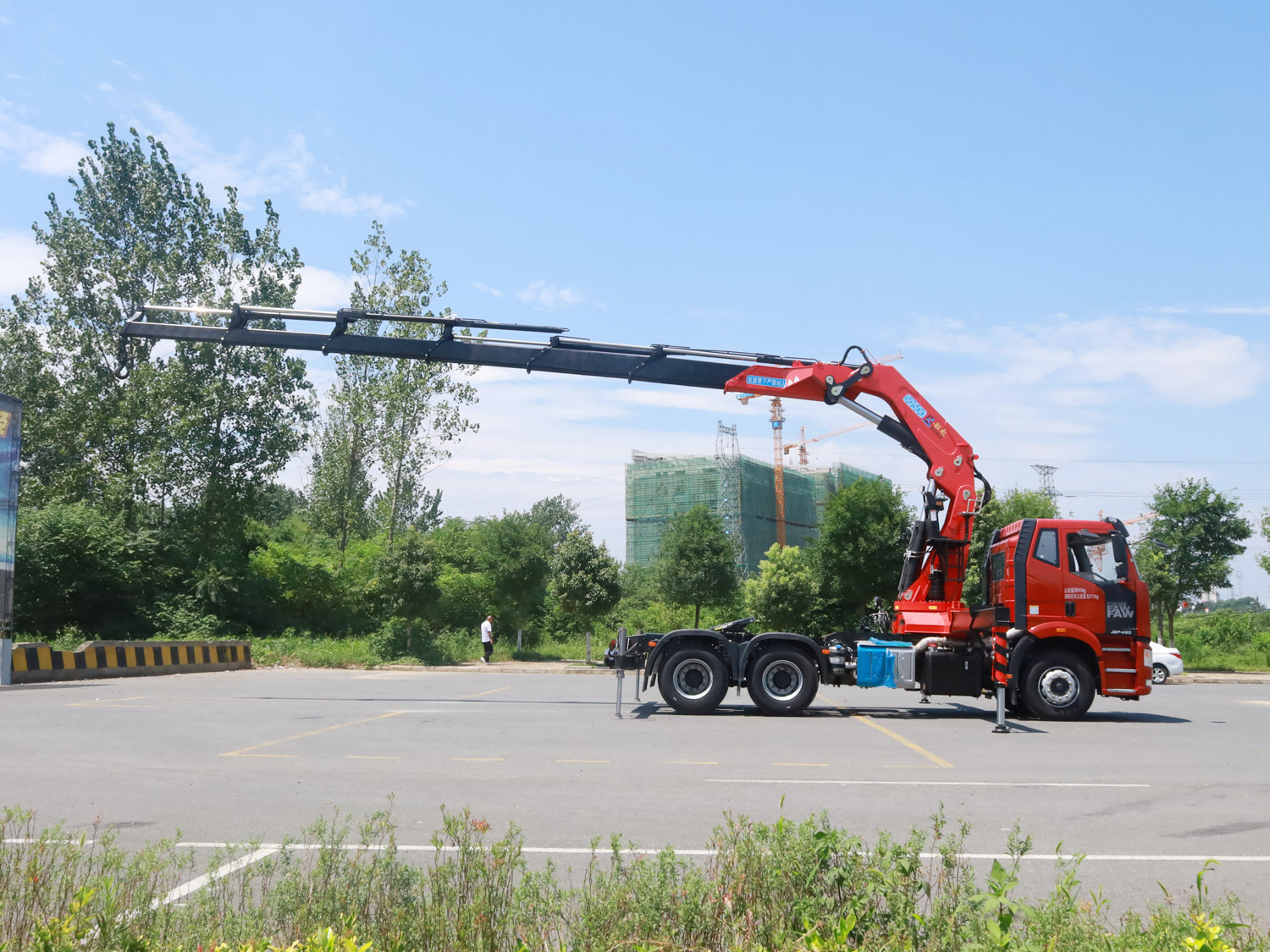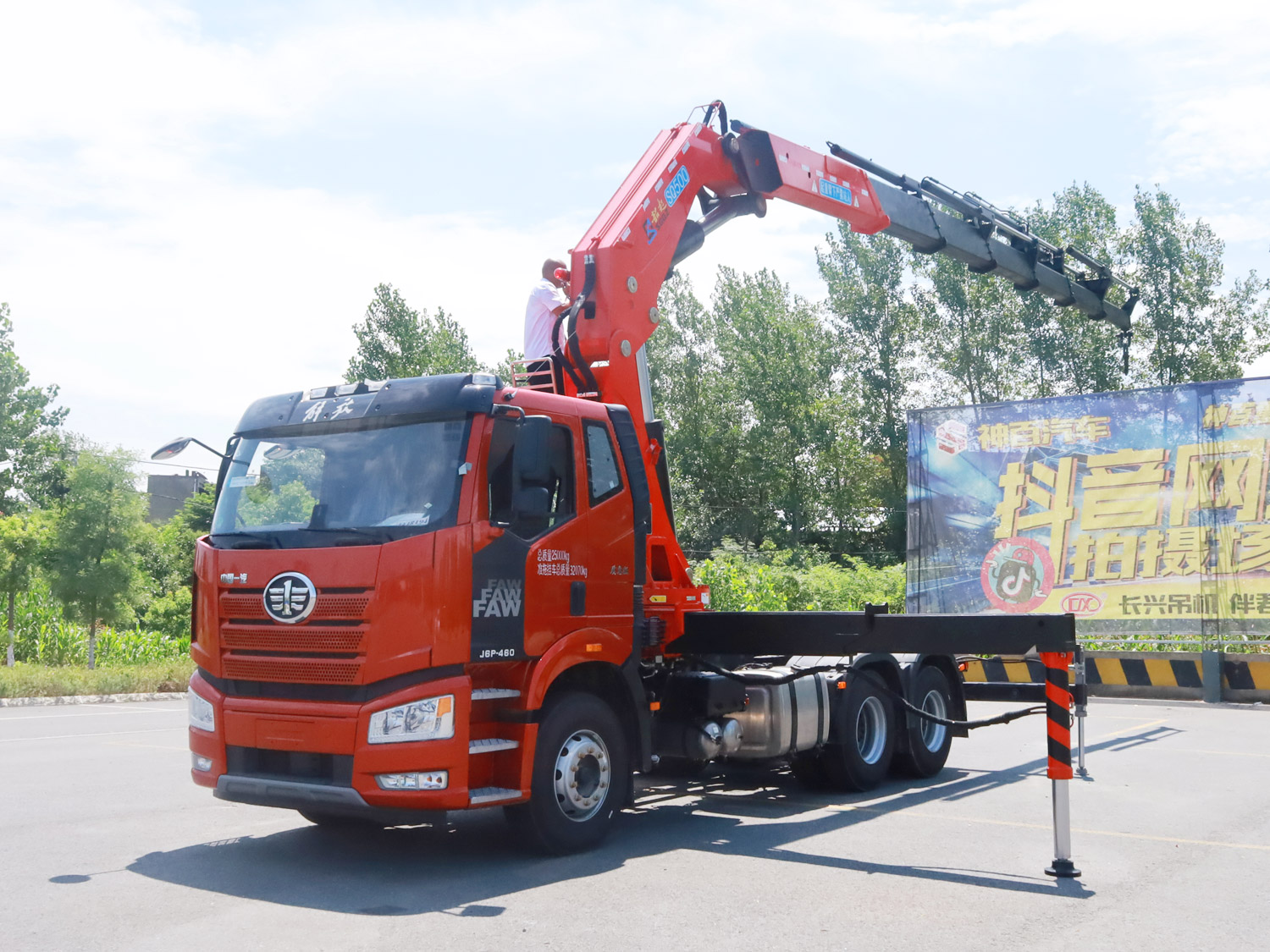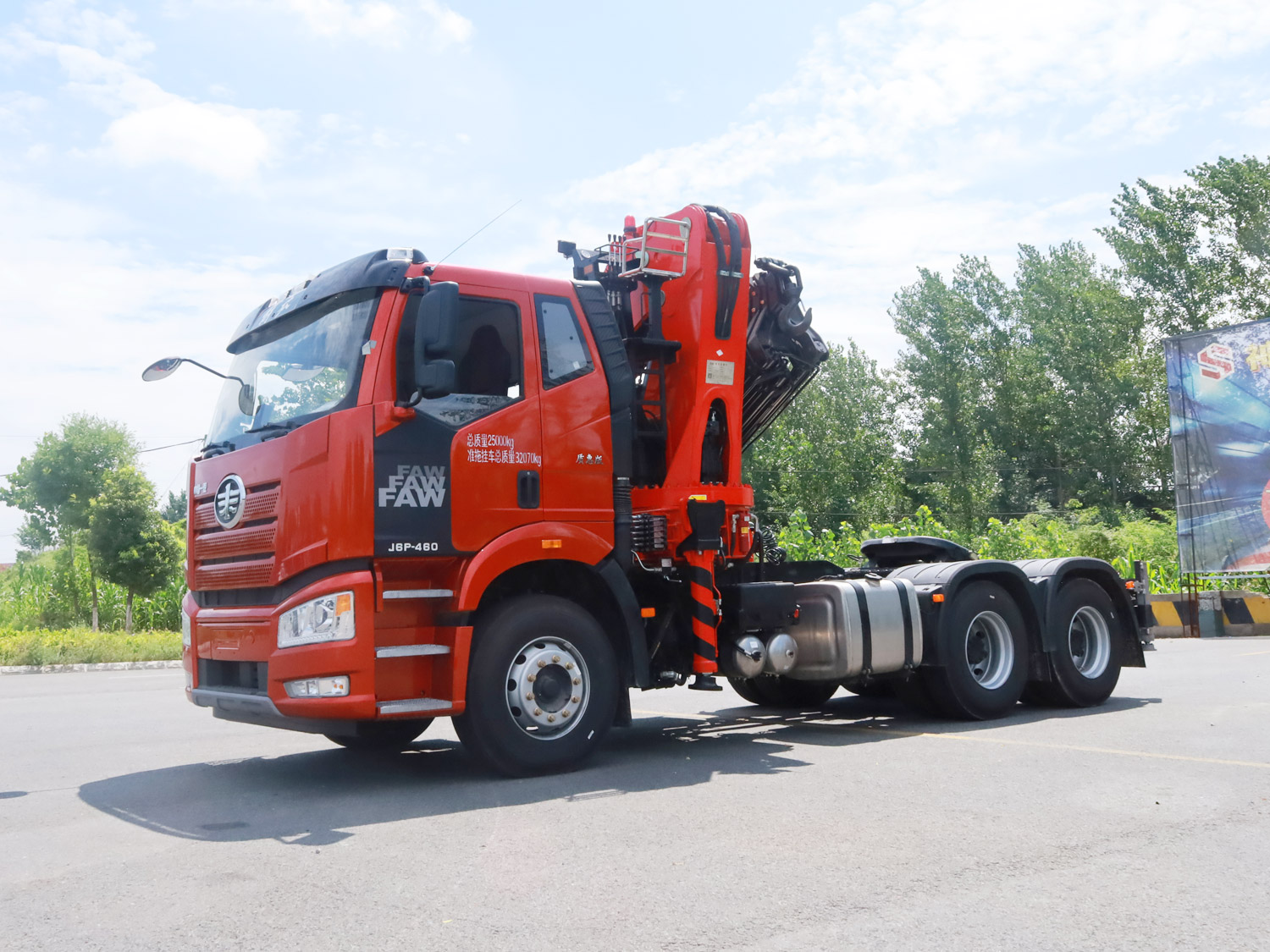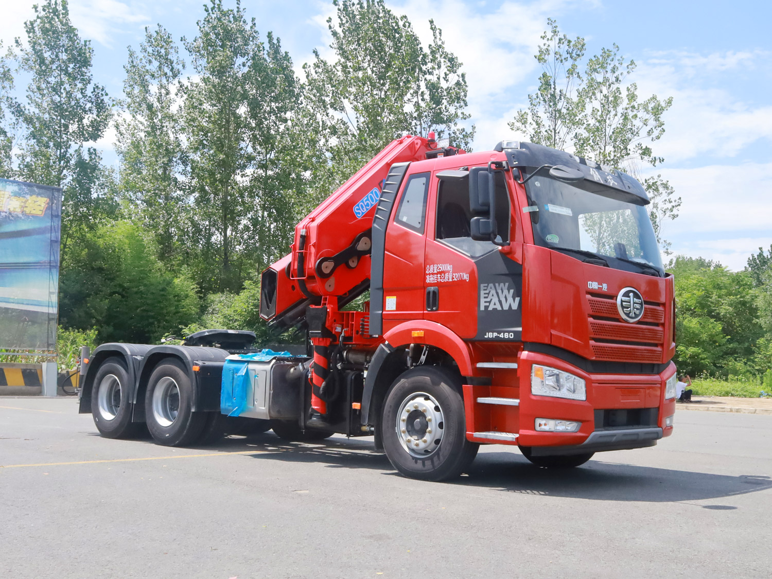 解放J6P牽引頭上裝韶起25噸折臂式吊機(jī)