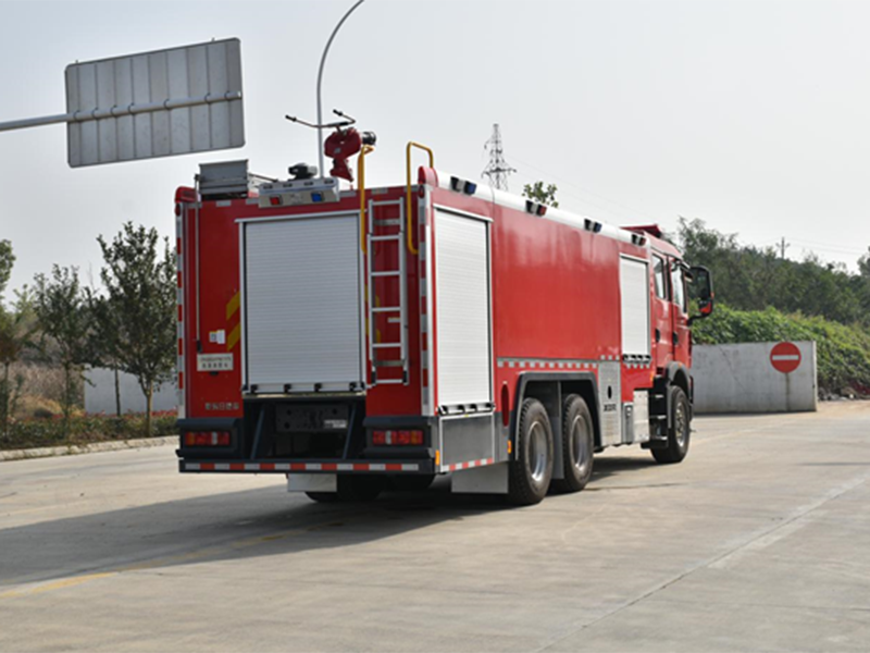 豪沃TX7后雙橋泡沫消防車是由二類汽車底盤、罐體、水泵、管路、儀表電路系統(tǒng)等部件組成,該車裝配鋁合金后爬梯(可拆卸),泵房在整車尾部,罐體為鋼板焊接式,載液量17.0方(水14方/泡沫3方),水罐材質(zhì)為優(yōu)質(zhì)碳鋼板,水罐內(nèi)部做防腐處理,泡沫罐為不銹鋼材質(zhì)。該車裝備CB10/80常壓消防泵,PL8/64兩用消防炮。