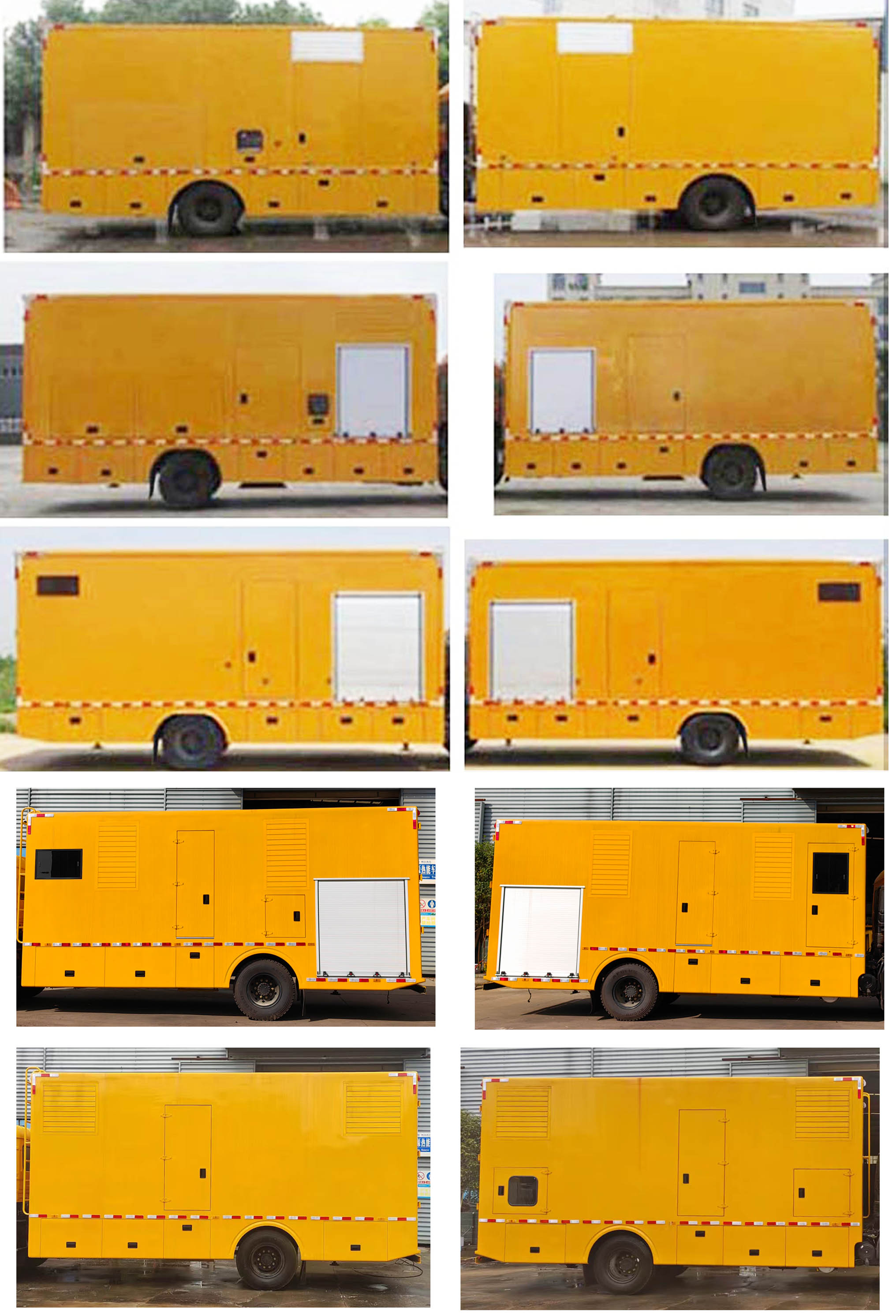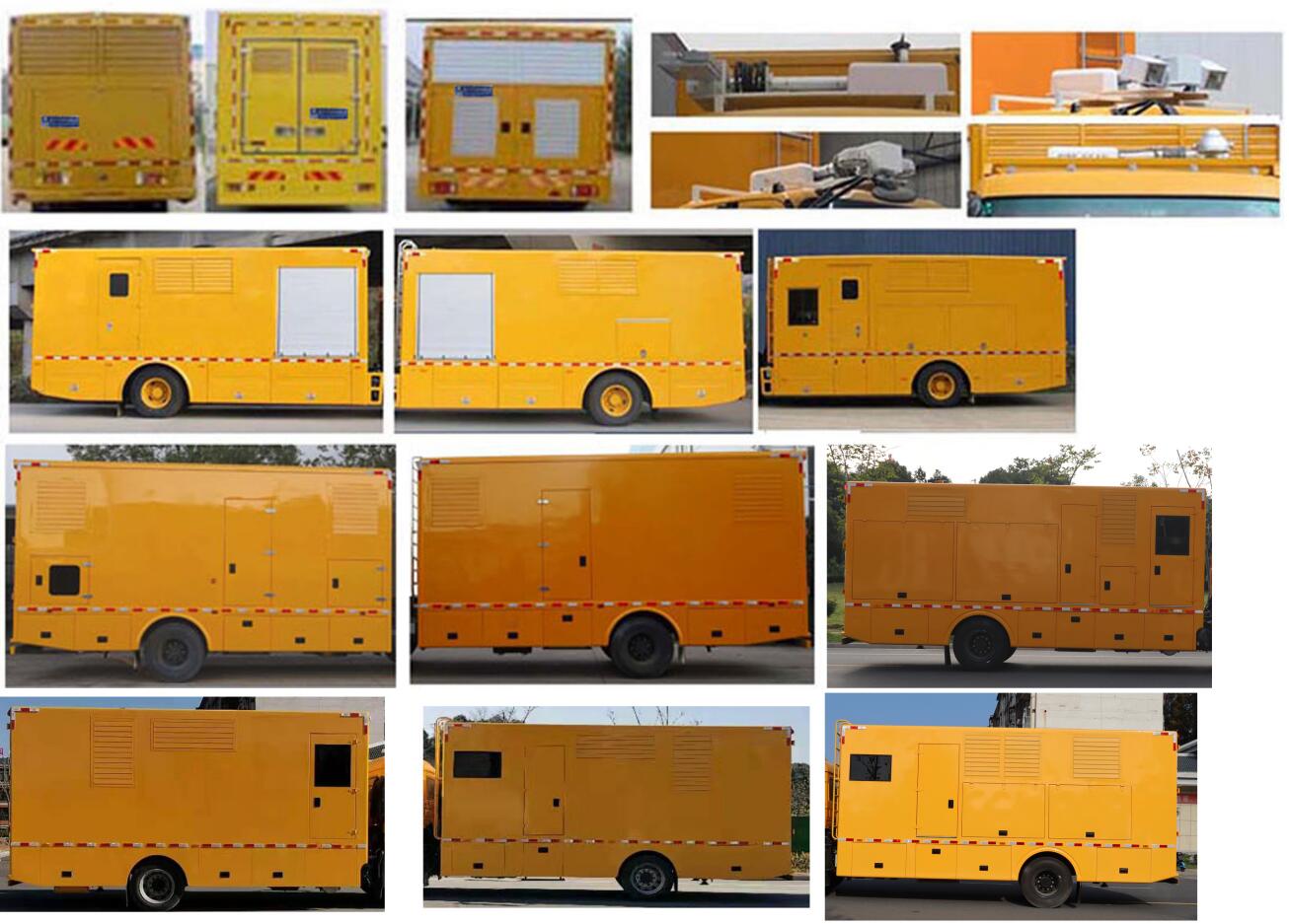 該車廂內(nèi)裝有發(fā)電機(jī)組,電纜絞盤,液壓(機(jī)械)支腿動力電纜,照明系統(tǒng),接地釬和消防設(shè)施等,主要用于處理突發(fā)事件的應(yīng)急搶險供電;選裝升降式照明燈,登頂梯;選裝雙側(cè),單側(cè)及后部開門,外開風(fēng)窗,百頁窗,玻璃觀察窗;選裝側(cè)部普通防護(hù);選裝功率相近的發(fā)電機(jī)組,隨底盤選裝駕駛室,車長/軸距/后懸對應(yīng)關(guān)系為: 8990/5000/2560, 8800/4700/2670,8440/4500/2510,7940/4500/2010,7540/4200/1910,總質(zhì)量(Kg)/整備質(zhì)量(Kg)/駕駛室準(zhǔn)乘人數(shù)(人)對應(yīng)關(guān)系為:12475/12280(12345)/3(2),12000/11805(11870)/3(2),11505/11310(11375)/3(2),防護(hù)材料:Q235A碳鋼,連接方式:左右側(cè)面防護(hù)裝置為裙邊結(jié)構(gòu),后部防護(hù)斷面尺寸(mm):120×50,后部防護(hù)離地高度(mm):480;ABS型號/生產(chǎn)廠家:3631010-C2000/東科克諾爾商用車制動系統(tǒng)(十堰)有限公司,ABS 8/東科克諾爾商用車制動系統(tǒng)(十堰)有限公司,4460046450/威伯科汽車控制系統(tǒng)(中國)有限公司,擴(kuò)左右側(cè)面樣式; 選裝箱體外觀樣式;選裝新型外觀樣式。 |