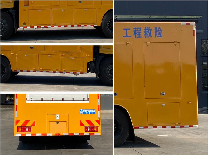 該車型用于應(yīng)急供電,應(yīng)急救險時排水作業(yè),該車配備的專用裝置有發(fā)電機機組,空壓機、電焊機、升降照明燈、液壓支腿、潛污泵、控制柜以及應(yīng)急搶險搶修時必備的光源,氣源,電源設(shè)備等工具; 車廂頂部封閉不可開啟; 整車長度/前懸/軸距/后懸的對應(yīng)關(guān)系為(mm):7380/1400(1430)/3800/2180(2150),7680/1400(1430)/3800/2480(2450),7530/1400(1430)/3950/2180(2150),7830/1400(1430)/3950/2480(2450),7780/1400(1430)/4200/2180(2150),8080/1400(1430)/4200/2480(2450),8080/1400(1430)/4500/2180(2150),8380/1400(1430)/4500/2480(2450),8280/1400(1430)/4700/2180(2150),8580/1400(1430)/4700/2480(2450),8580/1400(1430)/5000/2180(2150),8880/1400(1430)/5000/2480(2450),9180/1400(1430)/5000/2780(2750),9480/1400(1430)/5000/3080(3050); 防護材料:側(cè)后防護由車身結(jié)構(gòu)代替,后防護下邊緣離地高500mm; 裝有限速裝置,限速89km/h; ABS型號/生產(chǎn)廠家:3631010-C2000/東科克諾爾商用車制動系統(tǒng)(十堰)有限公司,ABS 8/東科克諾爾商用車制動系統(tǒng)(十堰)有限公司, 4460046450/威伯科汽車控制系統(tǒng)(中國)有限公司,J ABS/焦作博瑞克控制技術(shù)有限公司; 選裝外觀樣式. |