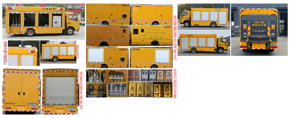 1.該車型用于應(yīng)急供電,應(yīng)急救險(xiǎn)時(shí)排水作業(yè),該車配備的專用裝置有發(fā)電機(jī)機(jī)組,空壓機(jī),電焊機(jī)以及應(yīng)急搶險(xiǎn)搶修時(shí)必備的光源,氣源,電源設(shè)備等工具;2.車廂頂部封閉不可開啟;3.整車長度/軸距/前懸/后懸的對應(yīng)關(guān)系為(mm):6548/3308/1130(1180)/2110(2060),7040/3800/1130(1180)/2110(2060),7340/3800/1130(1180)/2410(2360);4.防護(hù)材料:側(cè)后防護(hù)由車身結(jié)構(gòu)代替,后防護(hù)下邊緣離地高400mm; 選裝帶液壓尾板時(shí),尾板收起狀態(tài)的水平長度(mm):300,尾板質(zhì)量為440kg,下緣離地高410mm; 5.ABS型號/廠家:ABS型號:ABS/ASR-24V-4S/4M,廠家:襄陽東風(fēng)隆誠機(jī)械有限責(zé)任公司;6.隨底盤選裝駕駛室,選裝車輛外觀,選裝升降式照明燈,選裝側(cè)面,內(nèi)部,后部外觀樣式. |