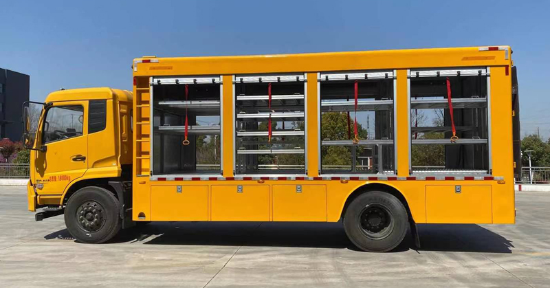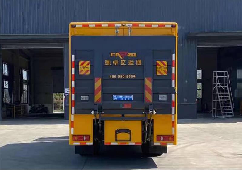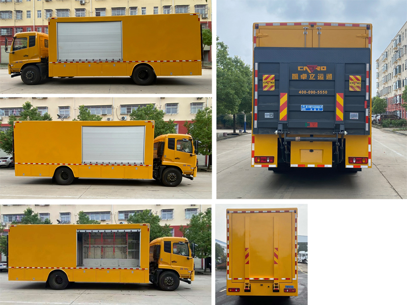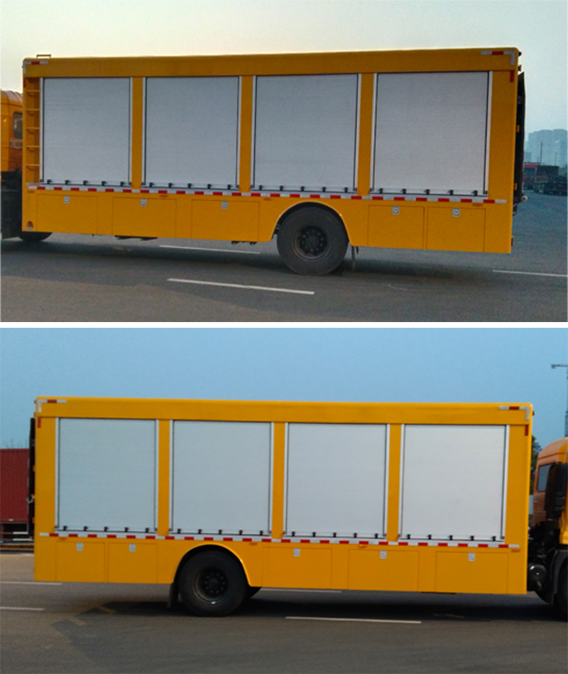 廂體頂部封閉,不可開啟;主要用于裝載軌道交通救援復(fù)軌設(shè)備、救援扶正設(shè)備、救援破拆設(shè)備、照明設(shè)備及其它救援輔助設(shè)備,作用于軌道交通列車的脫軌救援、車輛扶正救援等其它事故的應(yīng)急救援;整車外形長/前懸/軸距/后懸對應(yīng)關(guān)系(mm):7380/1400(1430,1455)/3800/2180(2150,2125),7680/1400(1430,1455)/3800/2480(2450,2425),7530/1400(1430,1455)/3950/2180(2150,2125),7830/1400(1430,1455)/3950/2480(2450,2425),7780/1400(1430,1455)/4200/2180(2150,2125),8080/1400(1430,1455)/4200/2480(2450,2425),8080/1400(1430,1455)/4500/2180(2150,2125),8380/1400(1430,1455)/4500/2480(2450,2425),8280/1400(1430,1455)/4700/2180(2150,2125),8580/1400(1430,1455)/4700/2480(2450,2425),8580/1400(1430,1455)/5000/2180(2150,2125),8880/1400(1430,1455)/5000/2480(2450,2425),9180/1400(1430)/5000/2780(2750),9480/1400(1430)/5000/3080(3050),9980/1400(1430)/5800/2780(2750),10280/1400(1430)/5800/3080(3050);側(cè)后防護由車身結(jié)構(gòu)代替,后防護離地高500mm;尾板、上下坡道(或類似裝置)收起狀態(tài)的水平長度(mm):280,尾板質(zhì)量為540kg;安裝有具有衛(wèi)星定位功能的行駛記錄儀,選裝ETC車載裝置;發(fā)動機/油耗值(L/100km)對應(yīng)關(guān)系為:D4.5NS6B190/24.4,D6.7NS6B230/23.7,DDi50E190-60/23.9,B6.2NS6B210/23.8,B6.2NS6B230/23.8,DDi50E220-60/24.3;ABS型號/生產(chǎn)廠家:3631010-C2000/東科克諾爾商用車制動系統(tǒng)(十堰)有限公司,ABS 8/東科克諾爾商用車制動系統(tǒng)(十堰)有限公司, 4460046450/威伯科汽車控制系統(tǒng)(中國)有限公司,J ABS/焦作博瑞克控制技術(shù)有限公司;選裝不同外形樣式. |