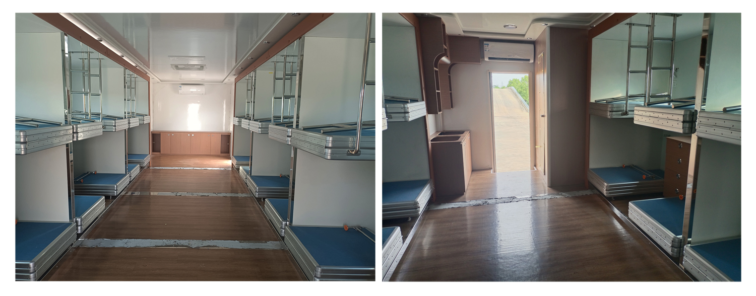 該車主要用于野外住宿,洗漱等野外宿營保障,專用裝置:廂體,臥鋪; 廂體頂部封閉,不可開啟; 僅采用7100mm軸距底盤改裝; 側防護采用裙邊結構代替,后防護材質(zhì)采用Q235,焊接連接,后防護截面尺寸:120mm×100mm,下邊緣離地高420mm; ABS系統(tǒng)控制器生產(chǎn)企業(yè)/型號為采埃孚商用車系統(tǒng)(青島)有限公司/4460046300;選裝EBS,EBS系統(tǒng)控制器生產(chǎn)企業(yè)/型號為采埃孚商用車系統(tǒng)(青島)有限公司/EBS3; 選裝限速裝置,限速89(km/h); 僅在駐車狀態(tài)下廂體兩側可擴展,行駛狀態(tài)時不可擴展,僅選用鋼板彈簧懸架. |