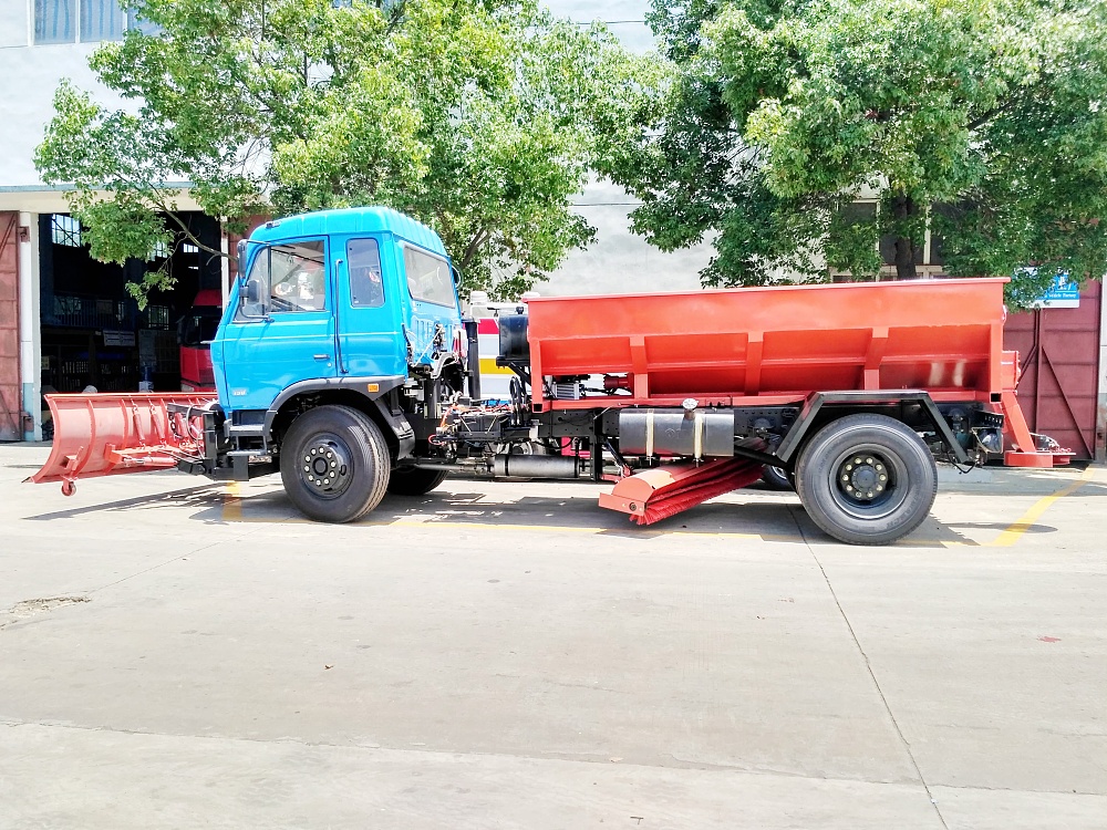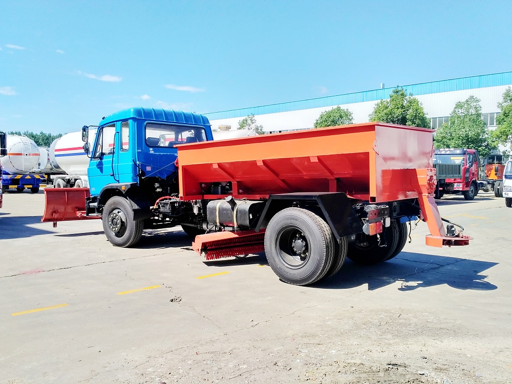 東風(fēng)多功能除雪融雪劑灑布車的用途是清除道路上的冰雪,廣泛使用于高等級公路、城市道路、機場、廣場、風(fēng)景區(qū)道路的除雪、融雪、除冰作業(yè),相對于人工除雪,使用機械除雪具有更優(yōu)的時效性,大幅提高除雪效率,減少人工勞動強度。使用東風(fēng)多功能除雪融雪劑灑布車可以在冬季期間投入它們來確保道路上冰雪的清除以及行車的安全。除雪車安裝的推雪鏟或掃雪滾刷具有越障功能,能夠很好的處理各種路面的雪和冰,如浮雪,薄雪,薄冰等,同時它可以在凹凸不平的路面行駛,作業(yè)及回避路障,工作效率高。