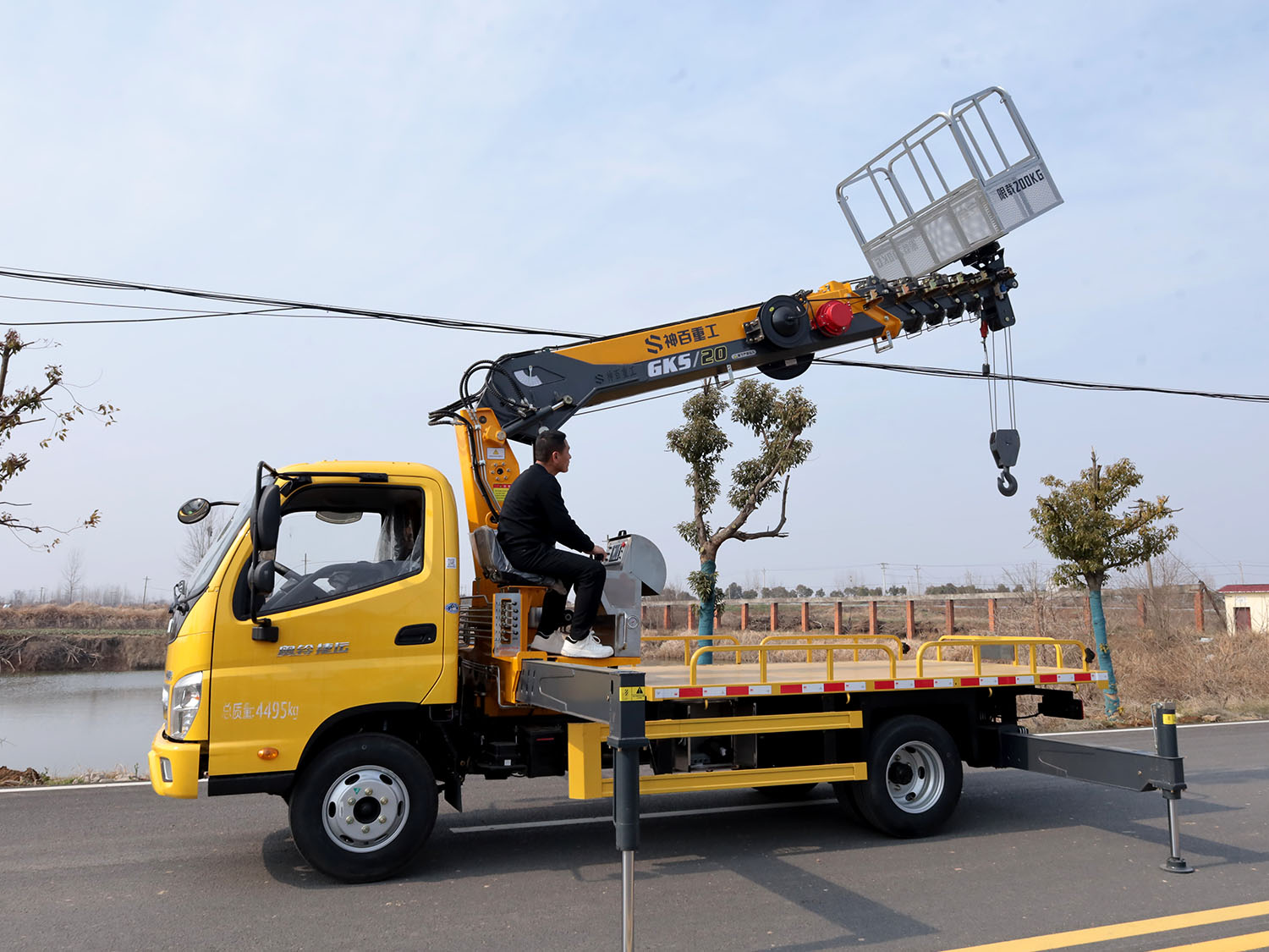 重汽豪沃單排上裝長興5噸直臂式吊機(帶高空作業(yè)功能)